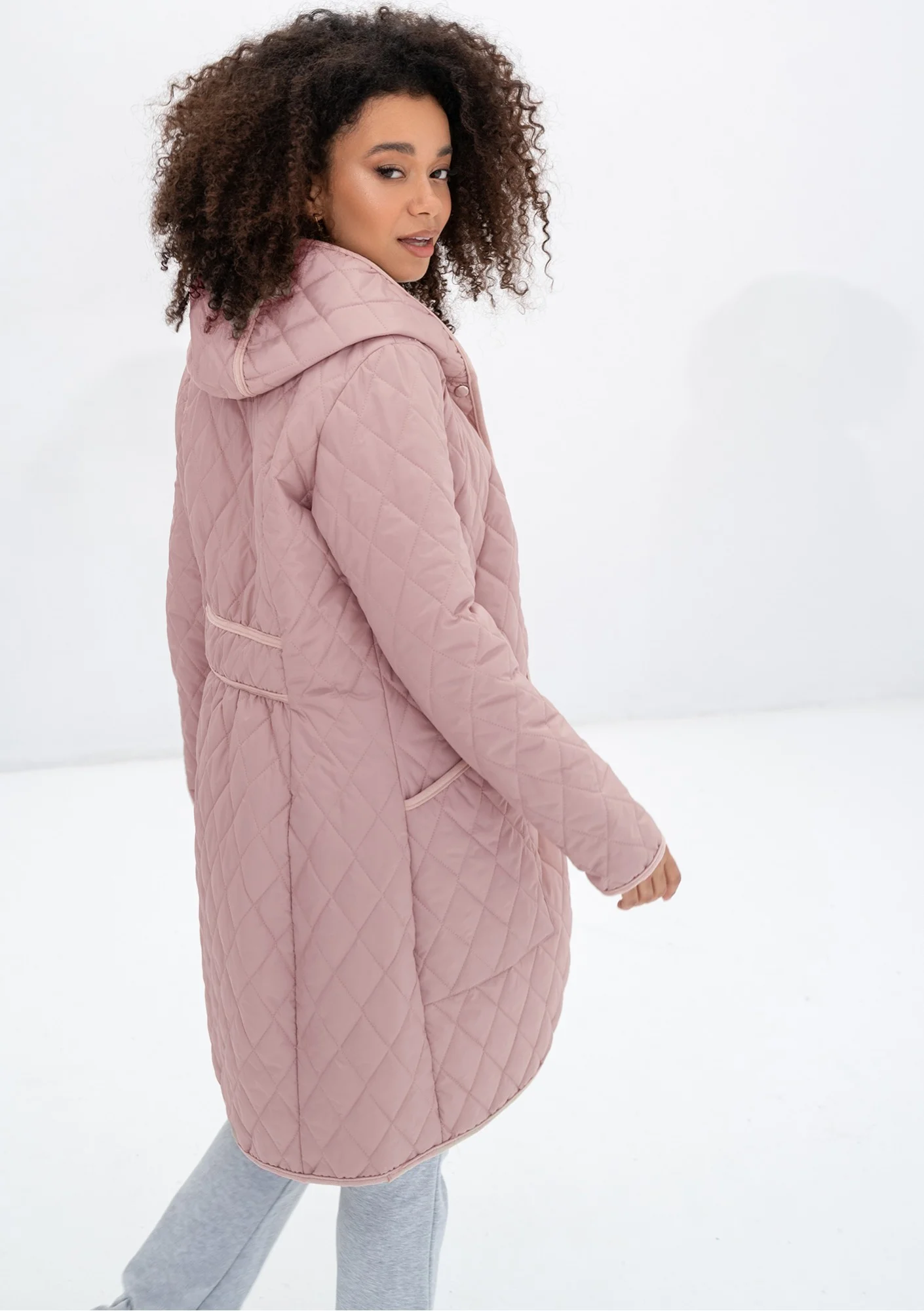 Nakya - Powder pink snap buttoned tight fit midi parka