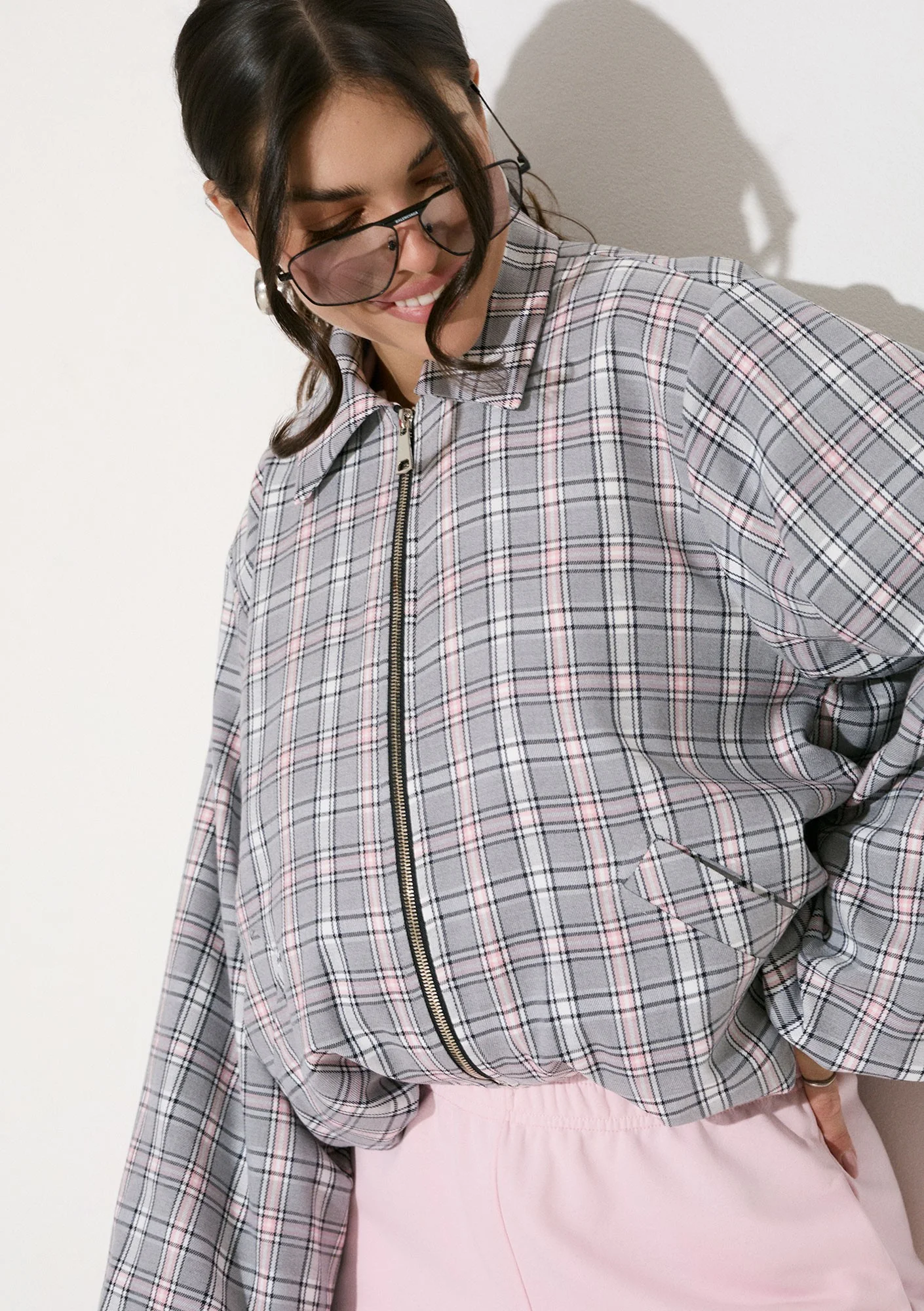 Cane - Grey and pink checked bomber jacket
