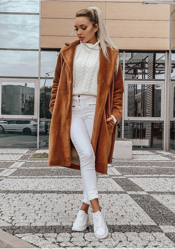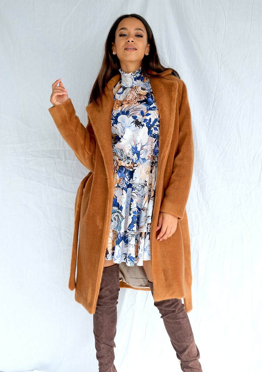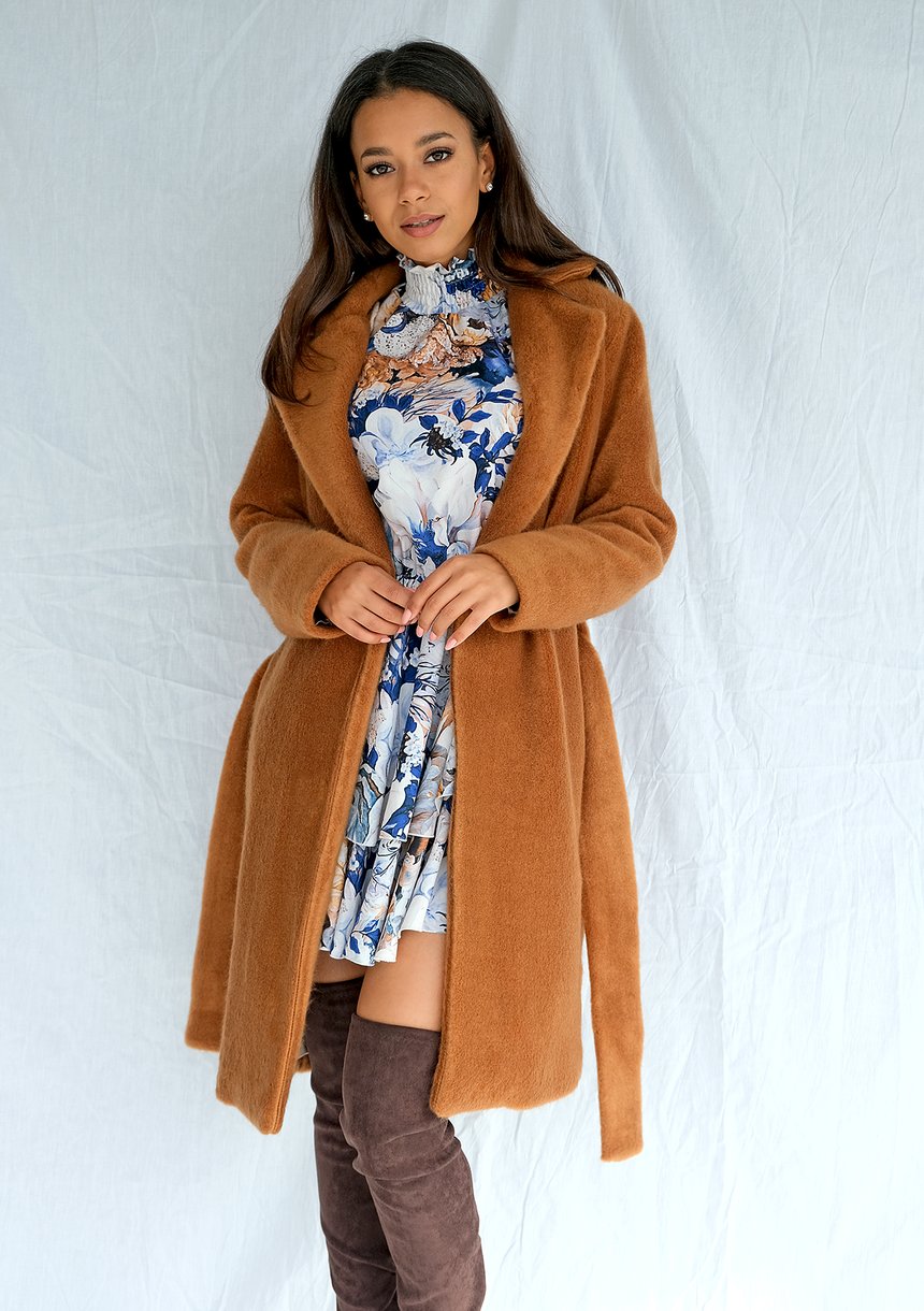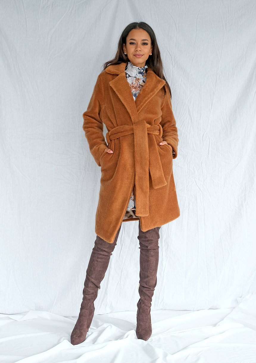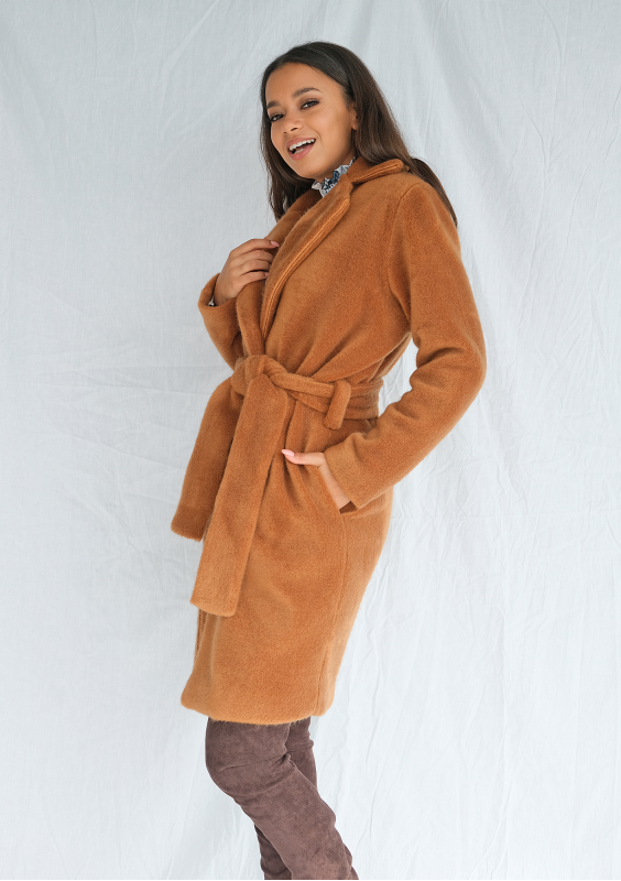 Honey brown coat with belt