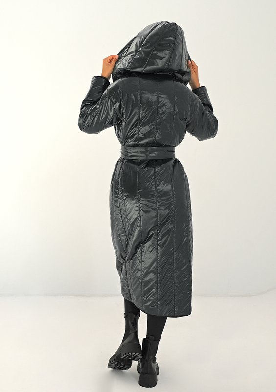 Maxel - quilted black tied coat