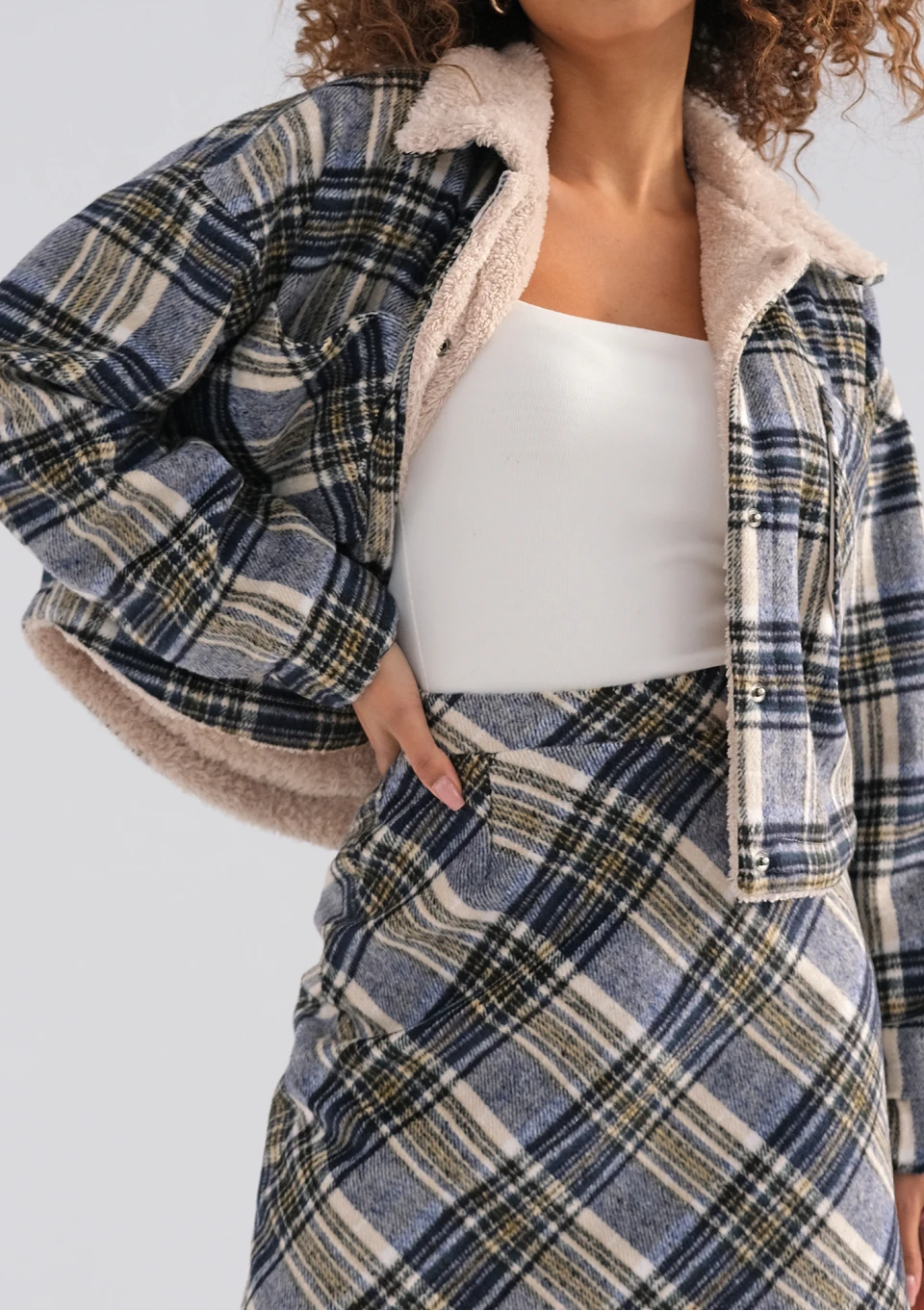 -30% Cane - Light blue and grey checked bomber jacket zł319.99 zł223.99 Lowest price from the last 30 days zł271.99