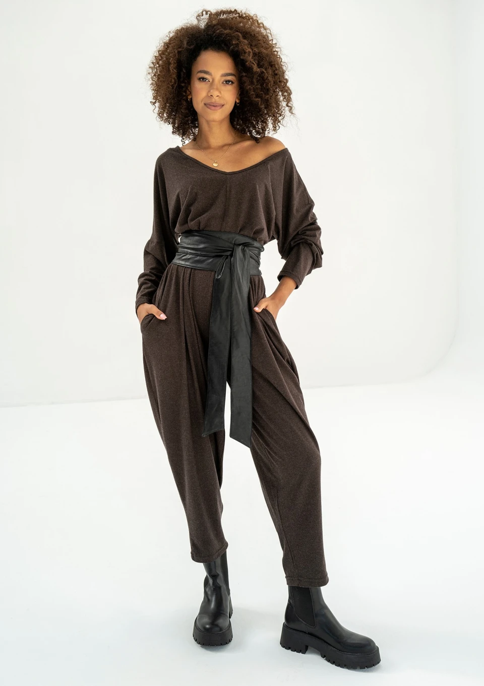 Luce - Brown jumpsuit with a halter neckline