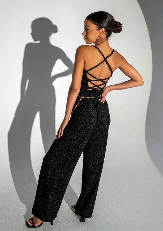Teyah - Shiny black strap jumpsuit