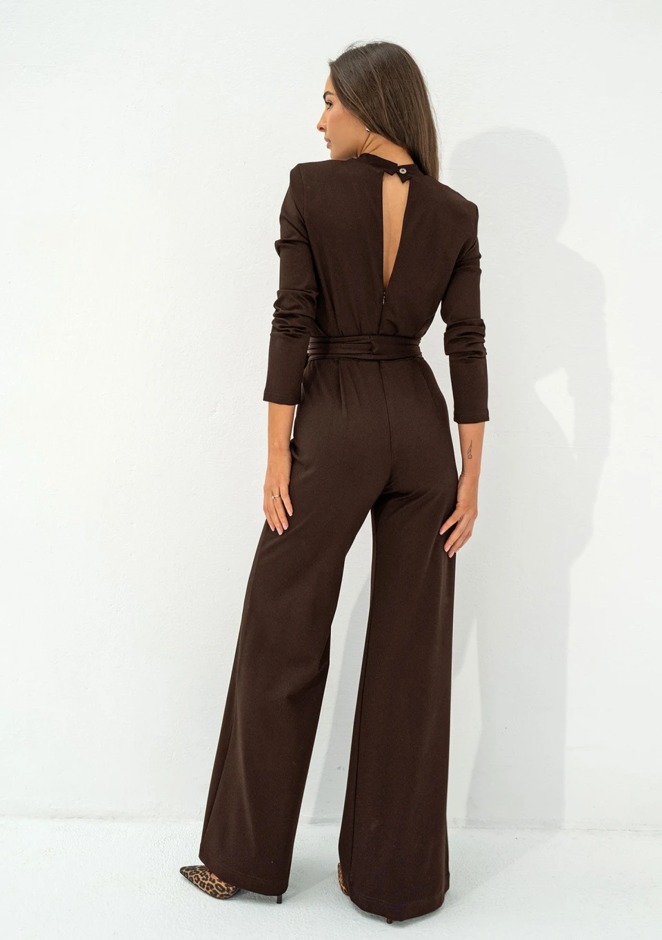 Glam - Brown jumpsuit with a square neckline