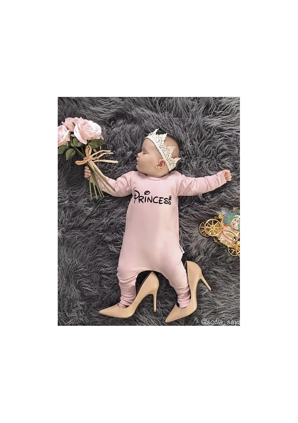 Powder pink long sleeved romper "princess"