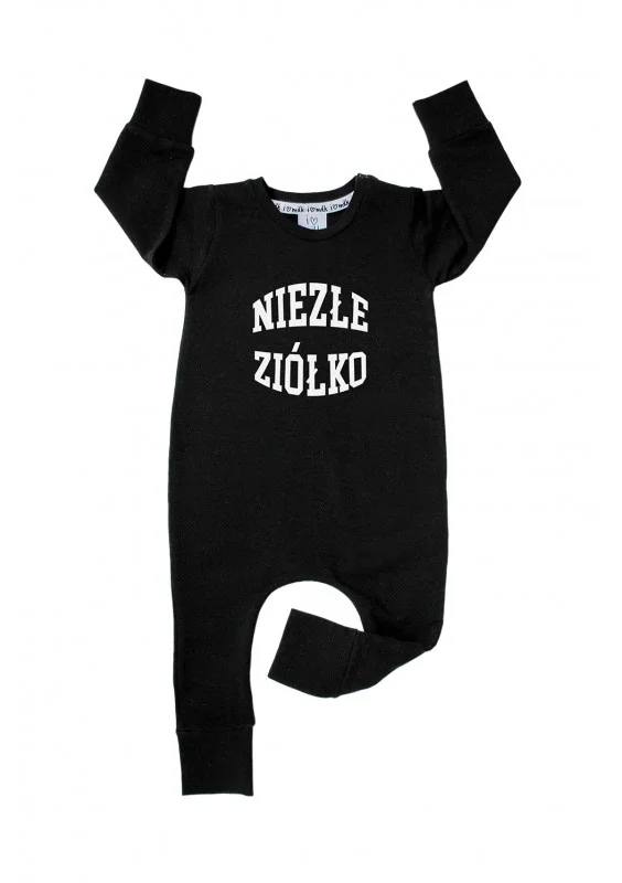 Black long sleeved romper "niezłe ziółko"