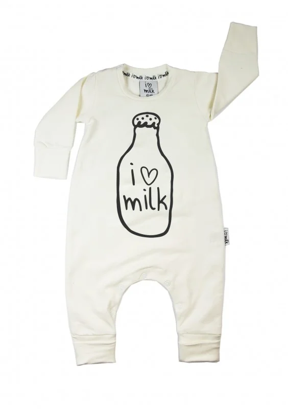 White long sleeved romper "I love milk"
