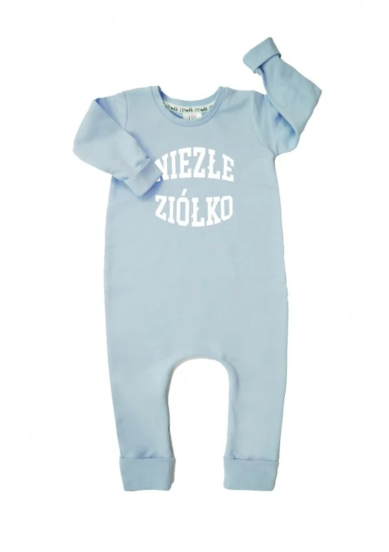 Light blue long sleeved romper "niezłe ziółko"