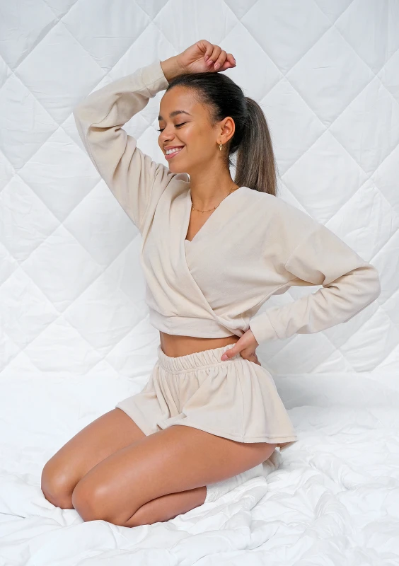 Beige velvet pajama set