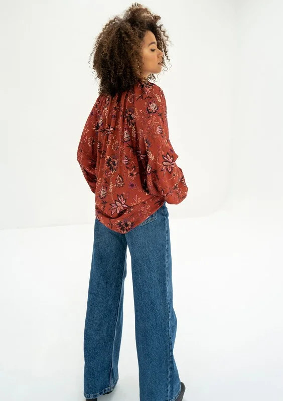 Noura - Red boho floral printed shirt