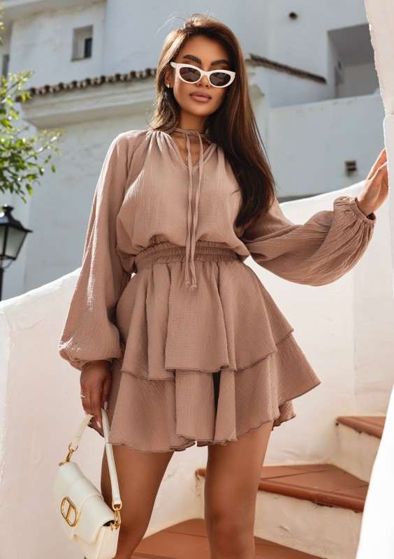 Capri - Brown muslin frilled shorts