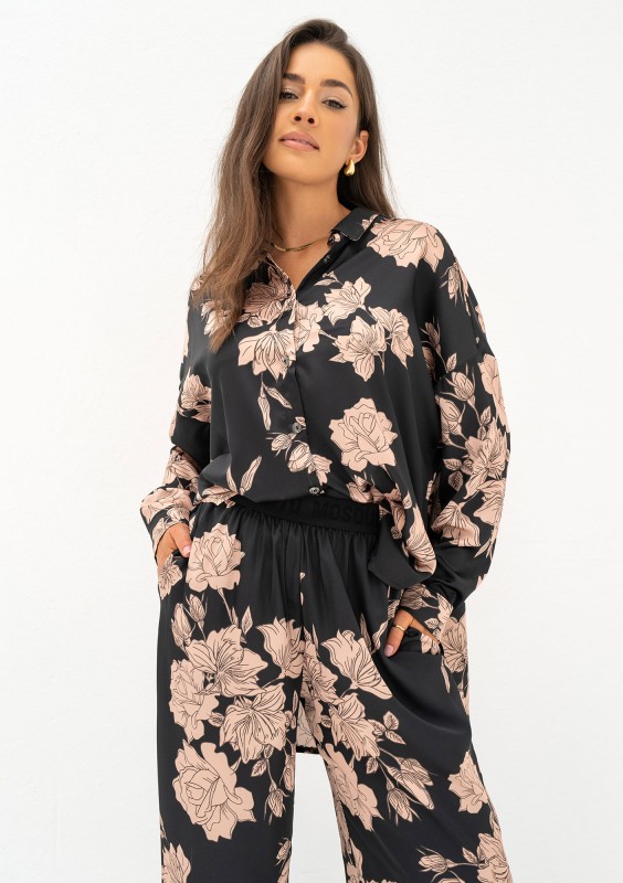 Mori - Loose beige roses printed shirt