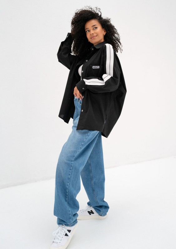 Tammy - Black oversized cotton shirt with stripes