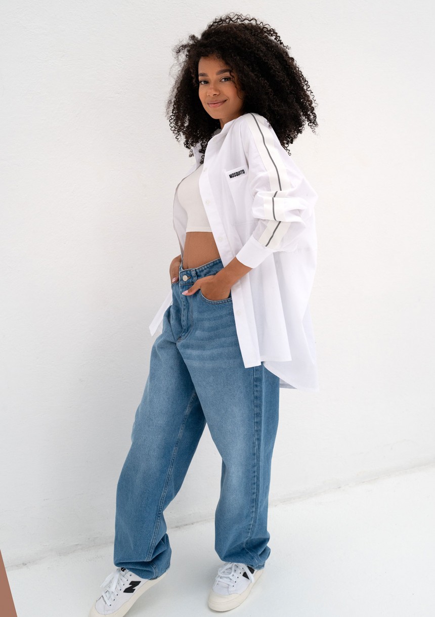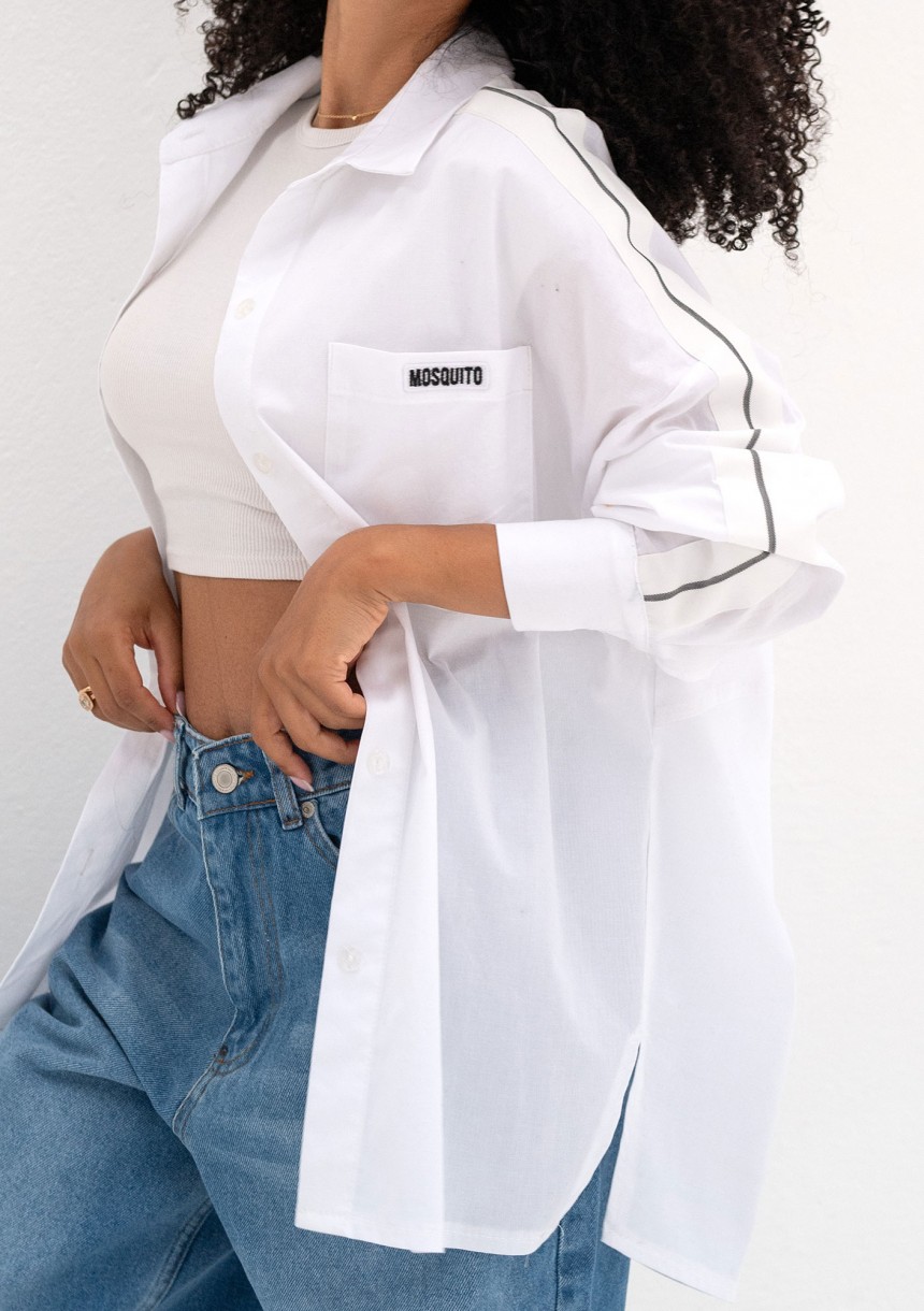 Tammy - White oversized cotton shirt with stripes
