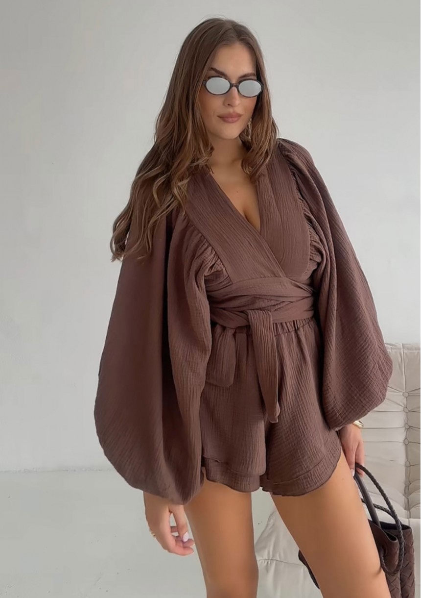 Capri - Brown muslin frilled shorts