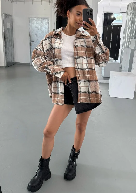 Shay - Winceyette oversize shirt Oat Caramel