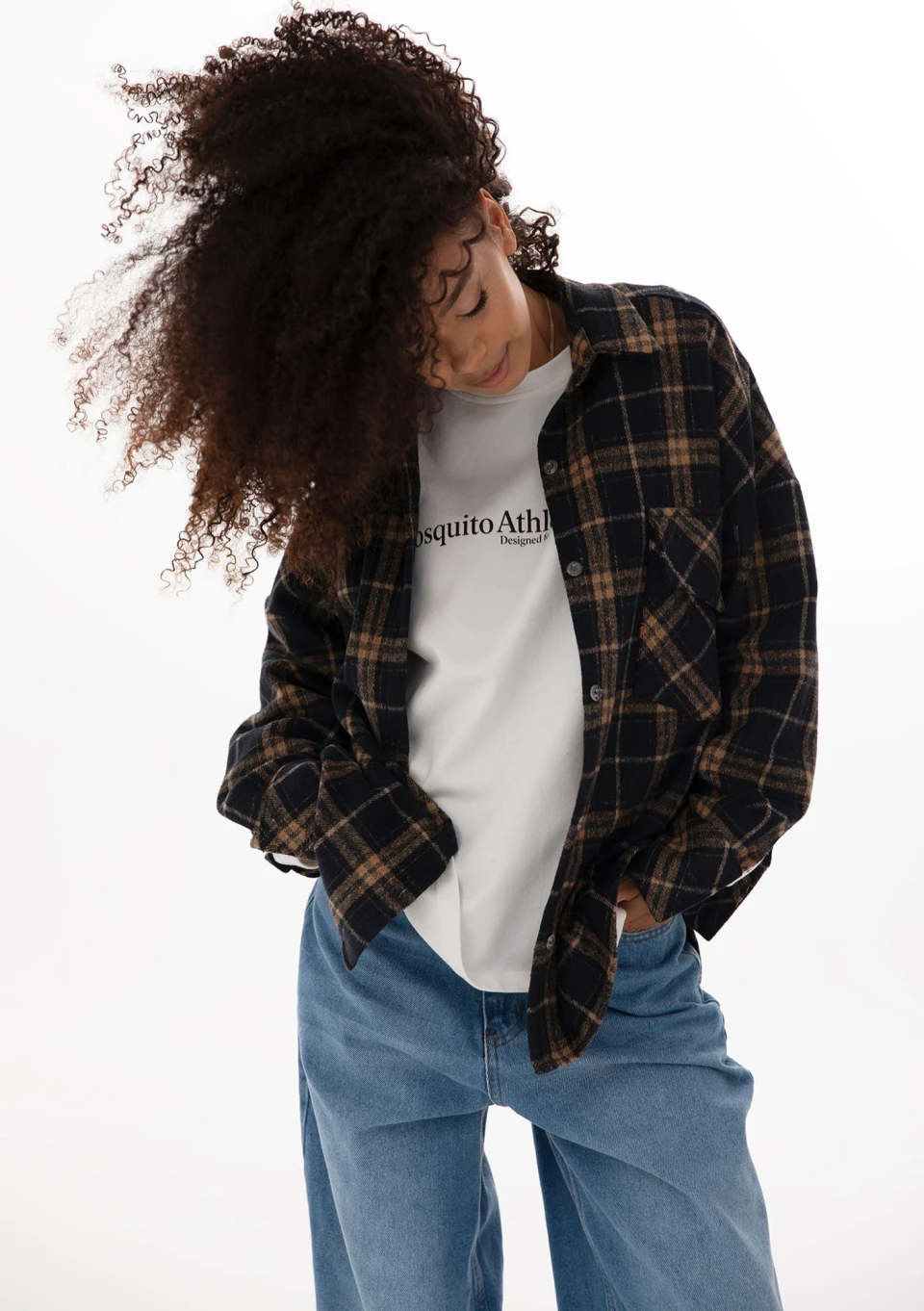 Shay - Winceyette oversize shirt Toffee Navy
