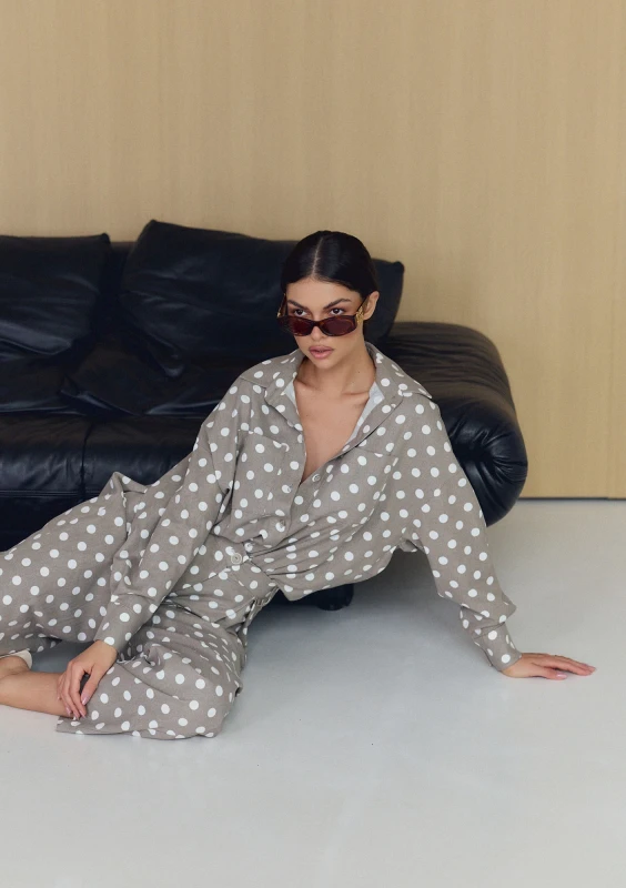 Tammy - Beige dotted linen shirt