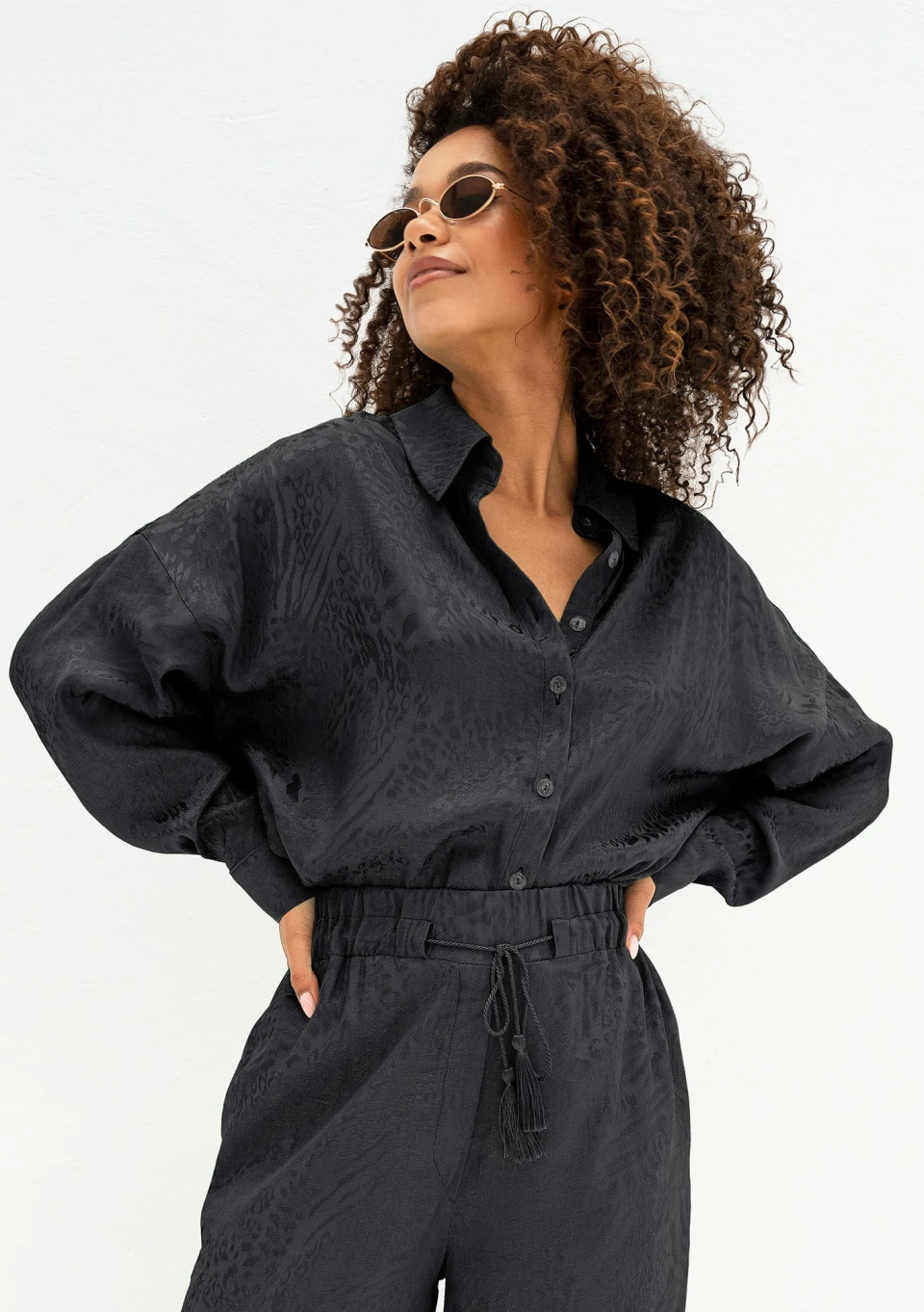 Cancun - Jacquard black boho shirt
