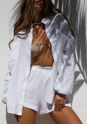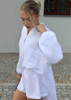Przy moim wzroście (161 cm) i szerokich ramionach koszula idealna rozmiarowo. Tylna część zasłania pośladki, koszula jest na tyle luźna, że spokojnie można ją wiązać czy delikatnie odsłonić ramię po jednej stronie i nadal czuć swobodę w ruchach. Polecam mocno.