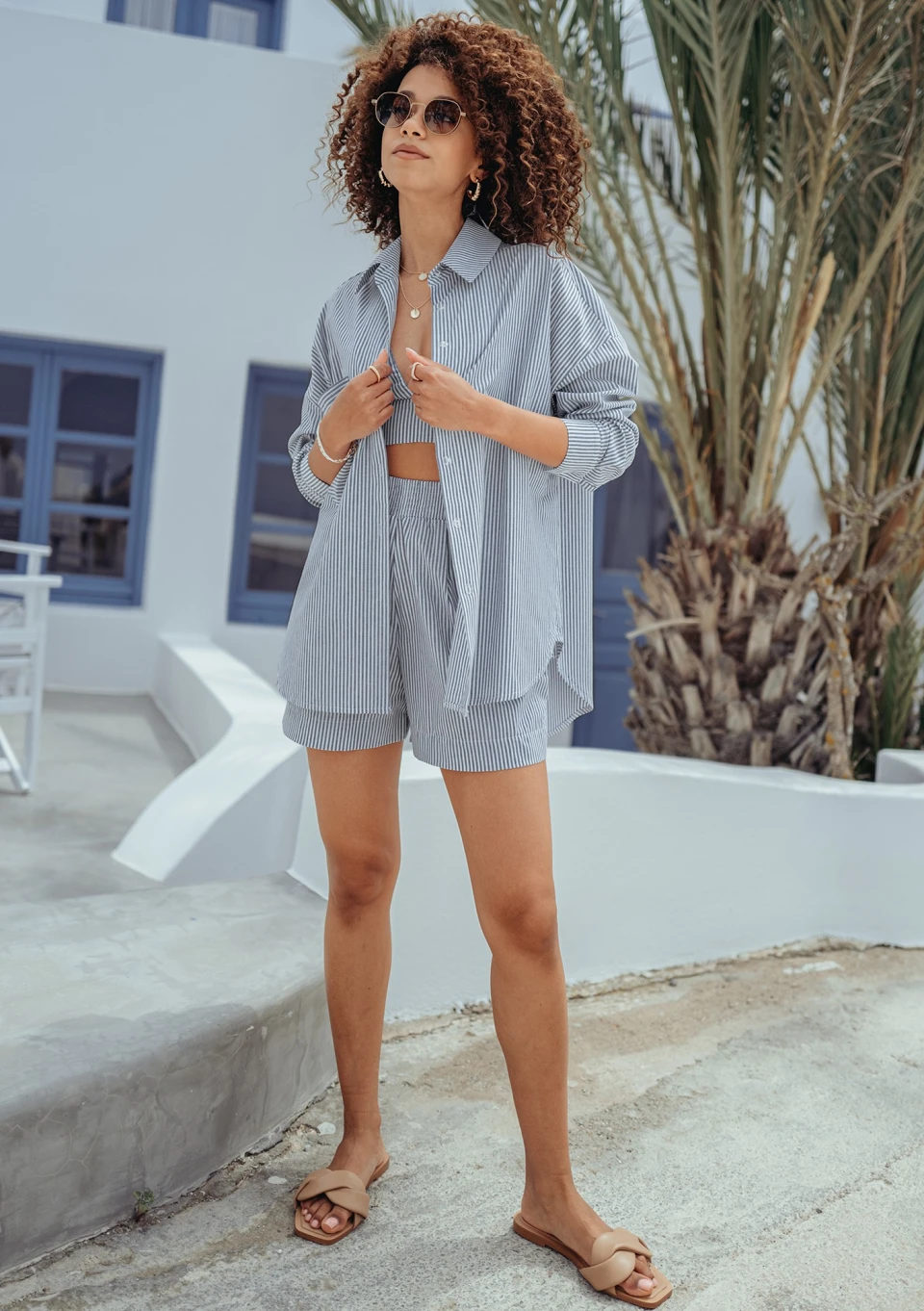 Capri - Beige muslin wrap shirt
