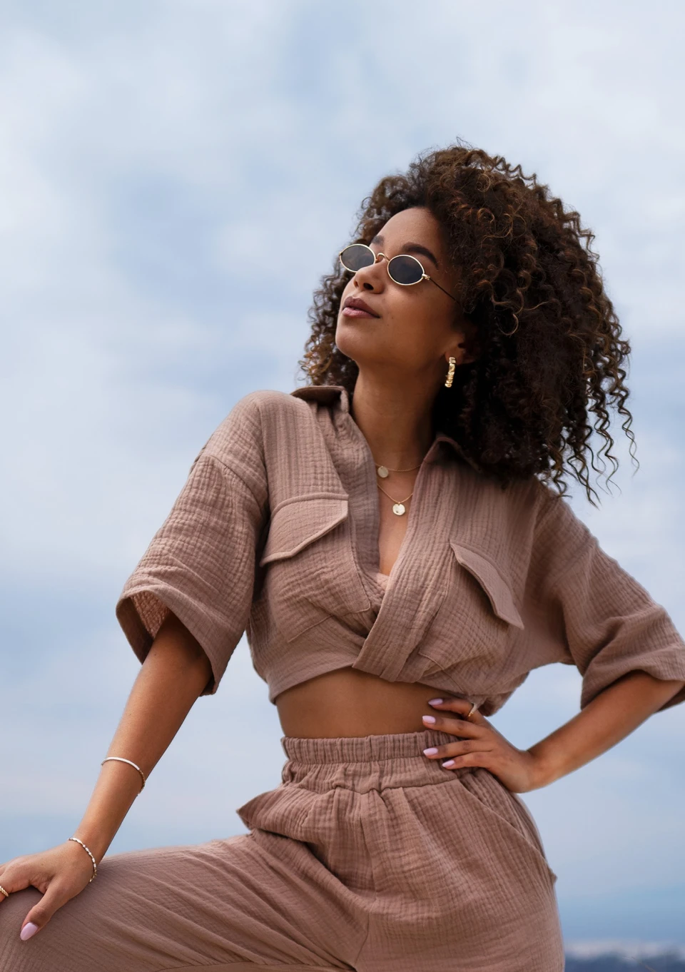-15% Capri - Brown muslin frilled shorts zł139.99 zł118.99 Lowest price from the last 30 days zł139.99