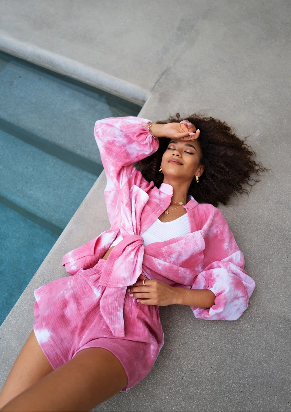 Palma - Pink tie dyed muslin shorts