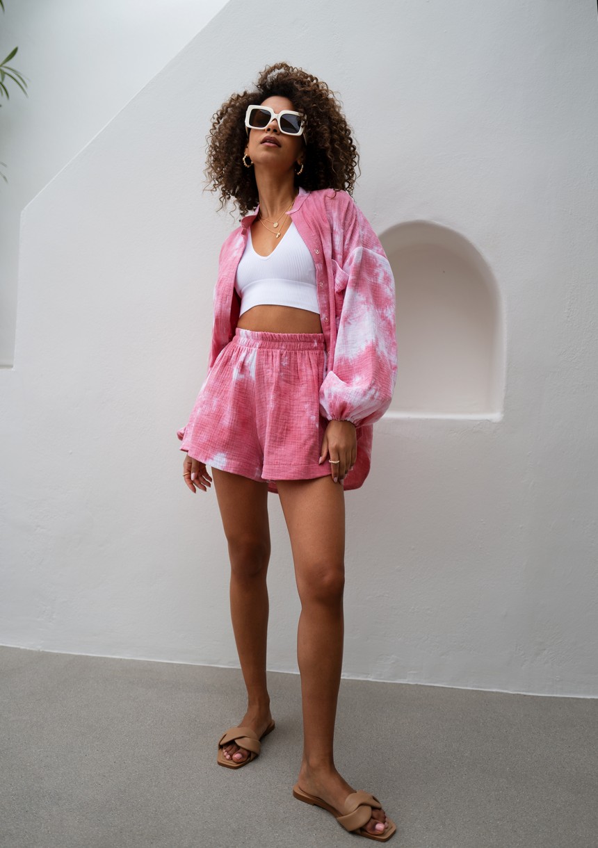 Palma - Pink tie dyed muslin shirt