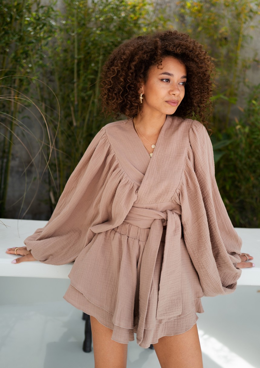 -50% Soleil - Beige cotton summer blouse zł144.99 zł72.50 Lowest price from the last 30 days zł144.99