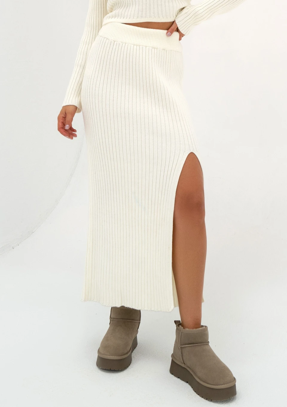 Kirry - Ecru knitted midi skirt
