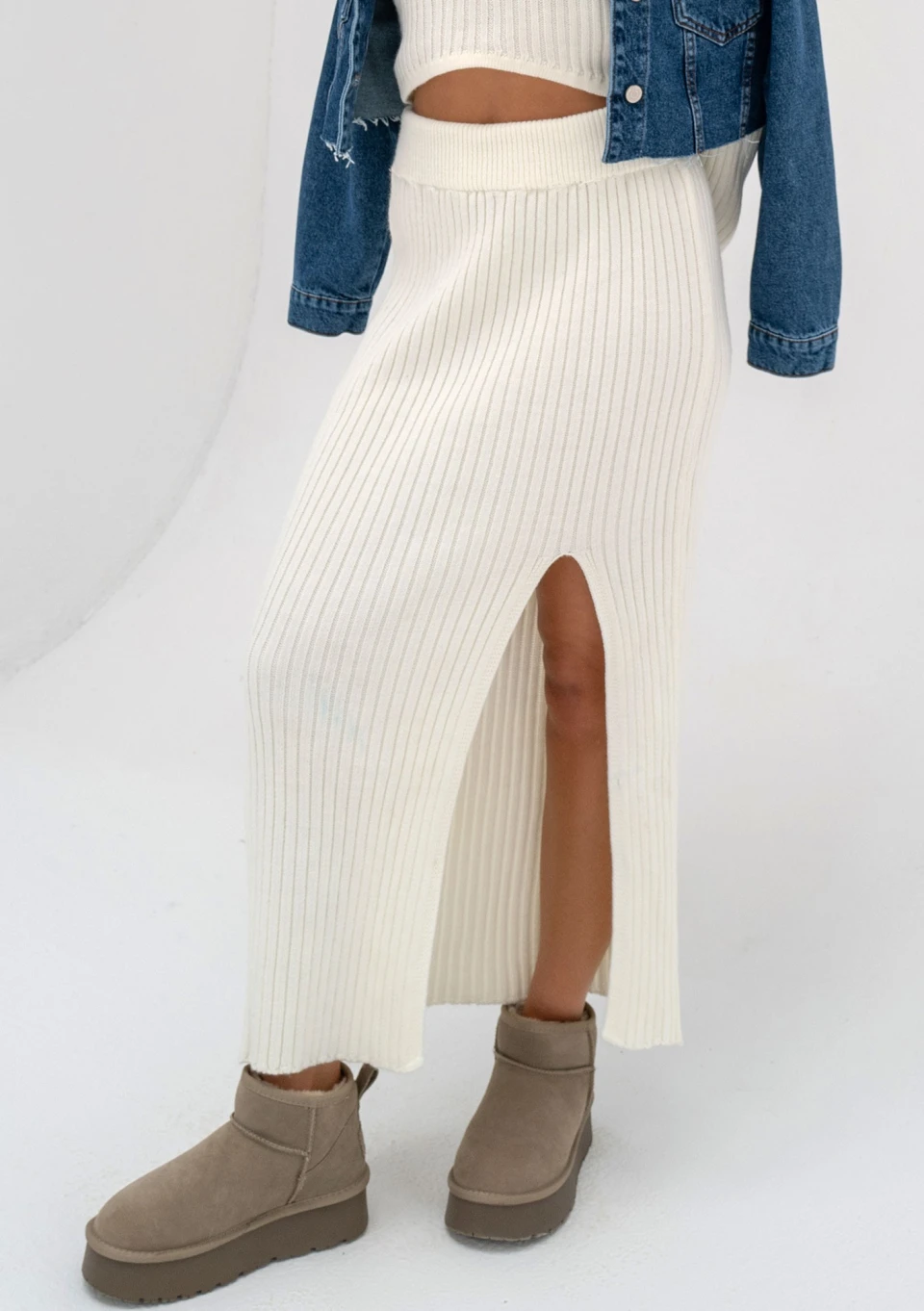 Jesse - Light beige knitted mini skirt