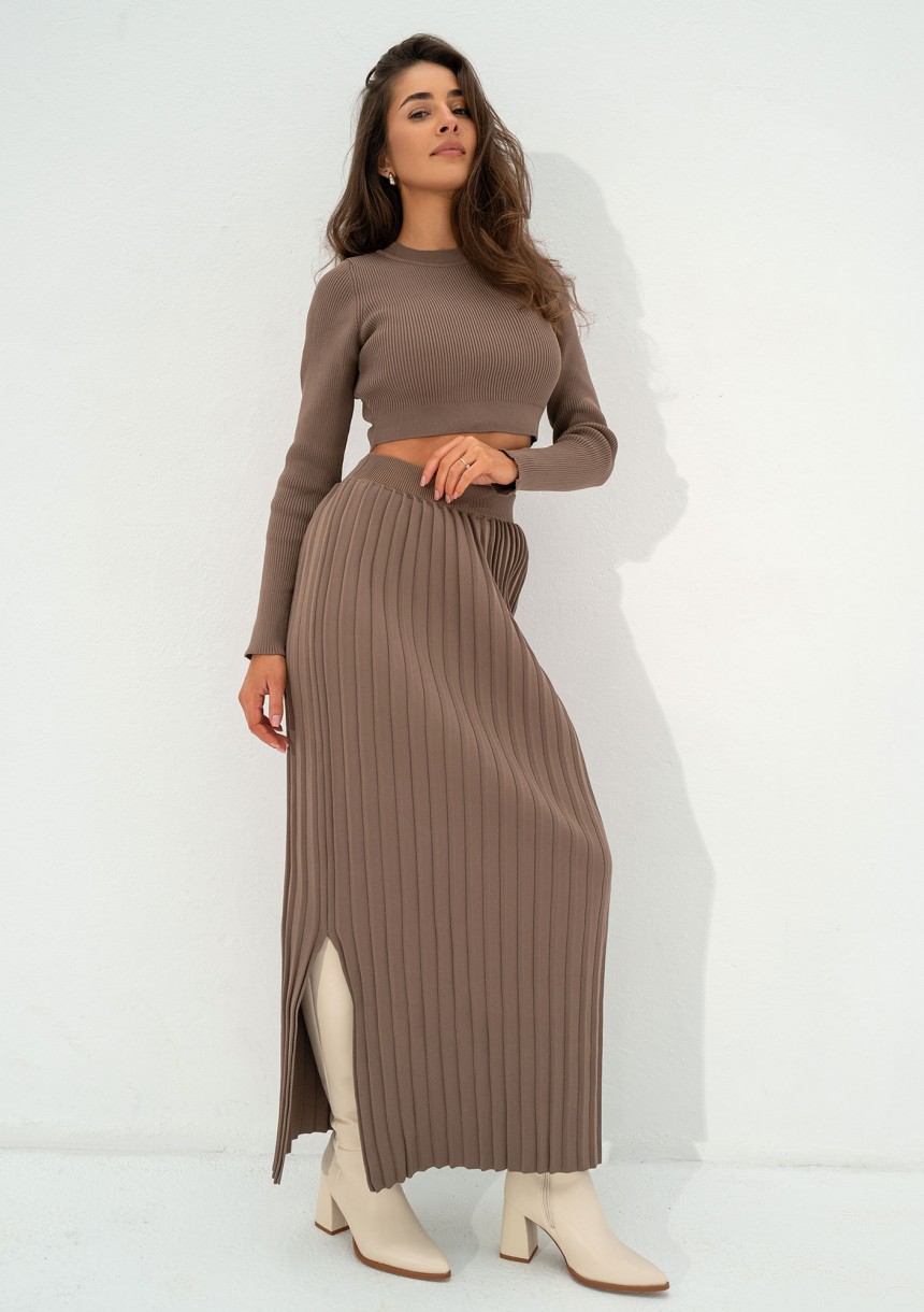 Marie - Coffee beige knitted maxi skirt