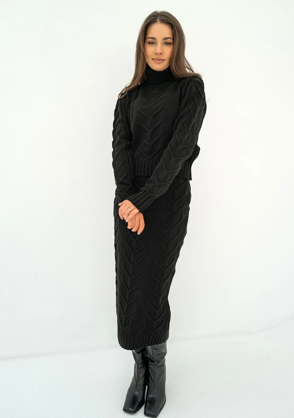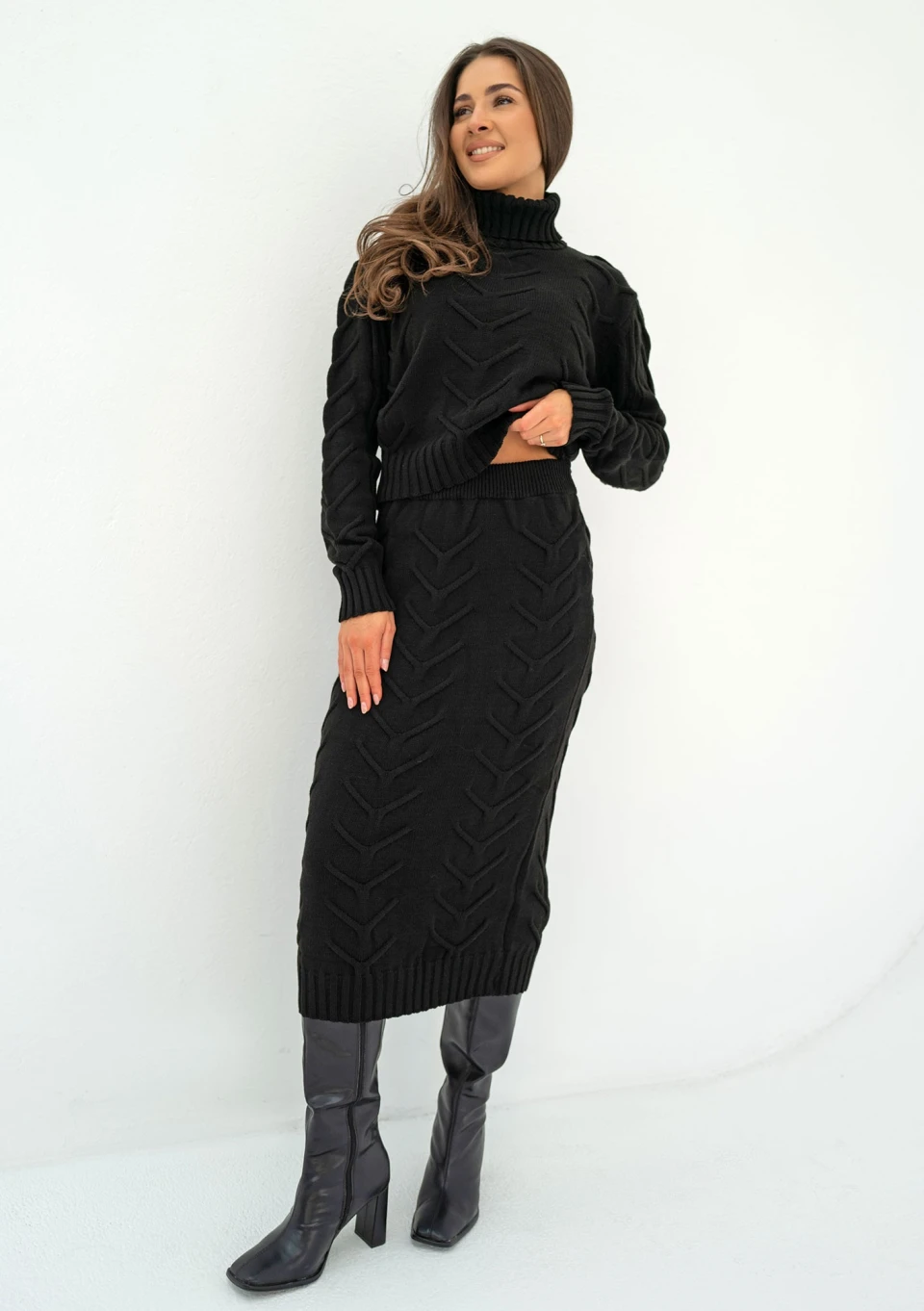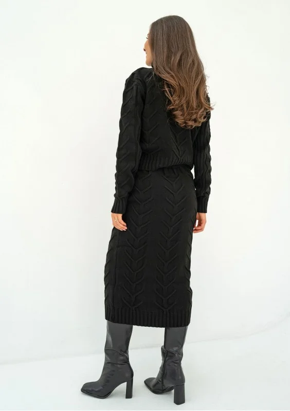 Malte - Black knitted midi skirt