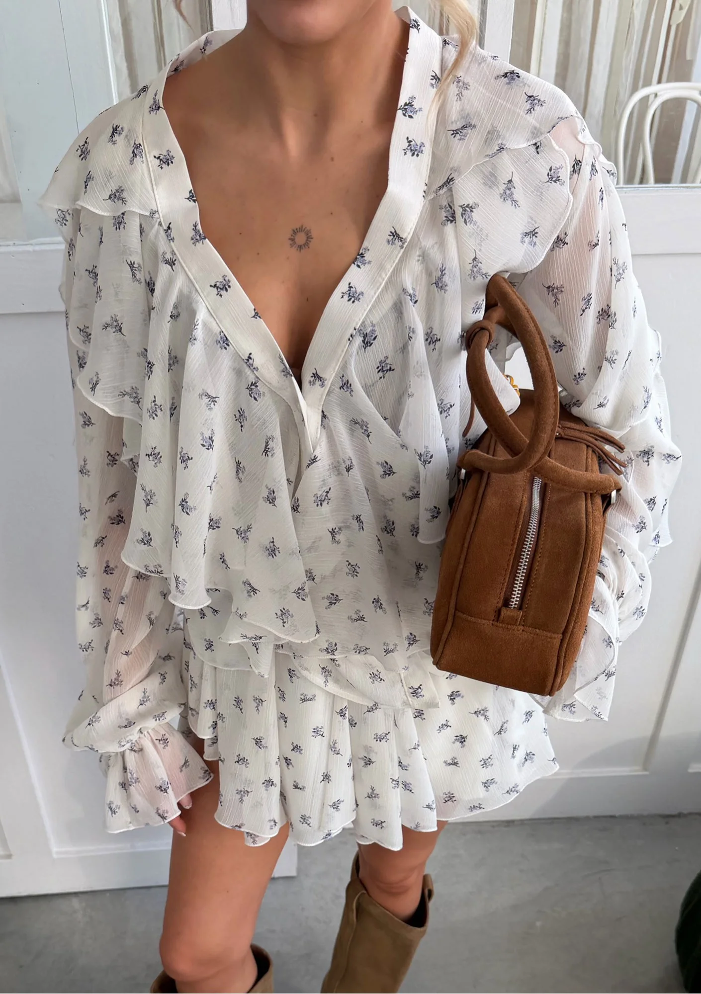 Bliss - Romantic frilled mini skirt Blue Flowers