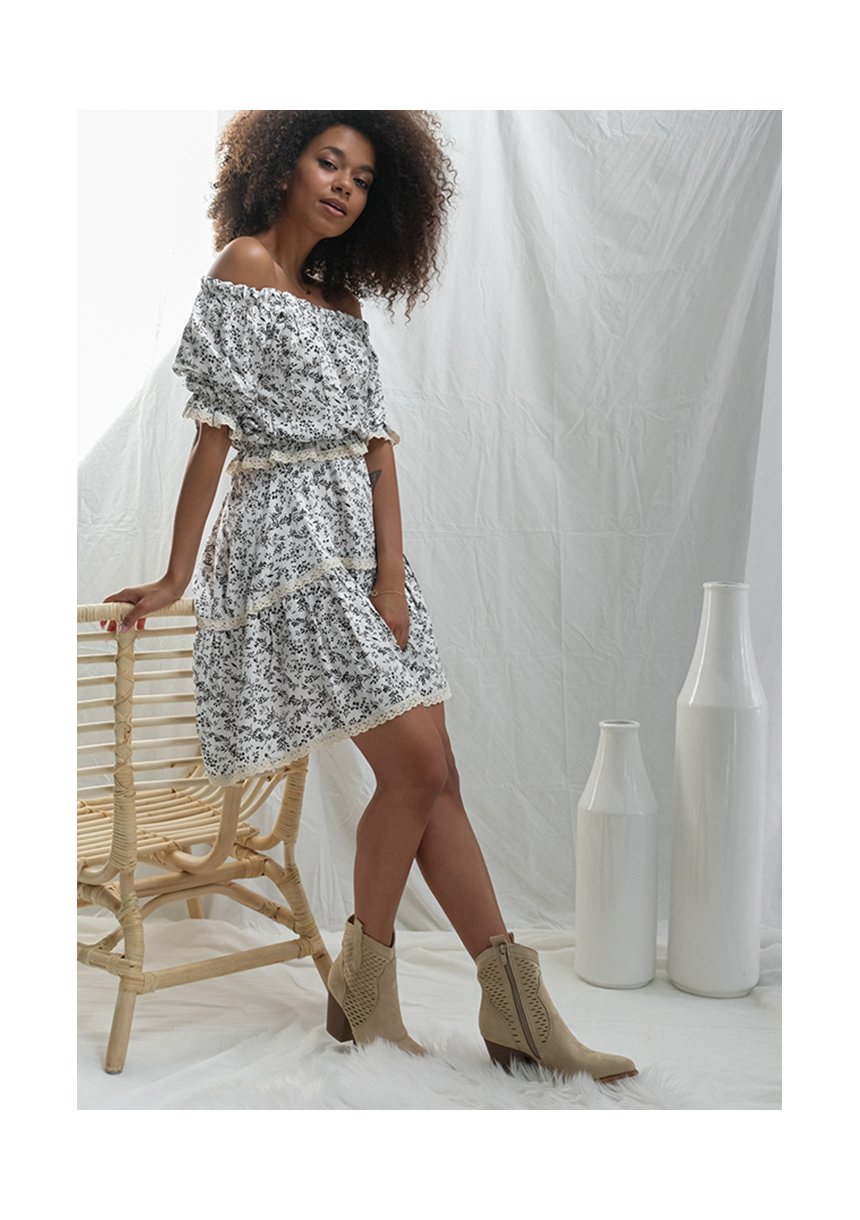 Ecru viscose skirt with lace details