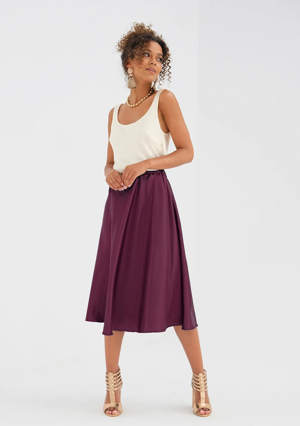 Araya - midi claret satin skirt