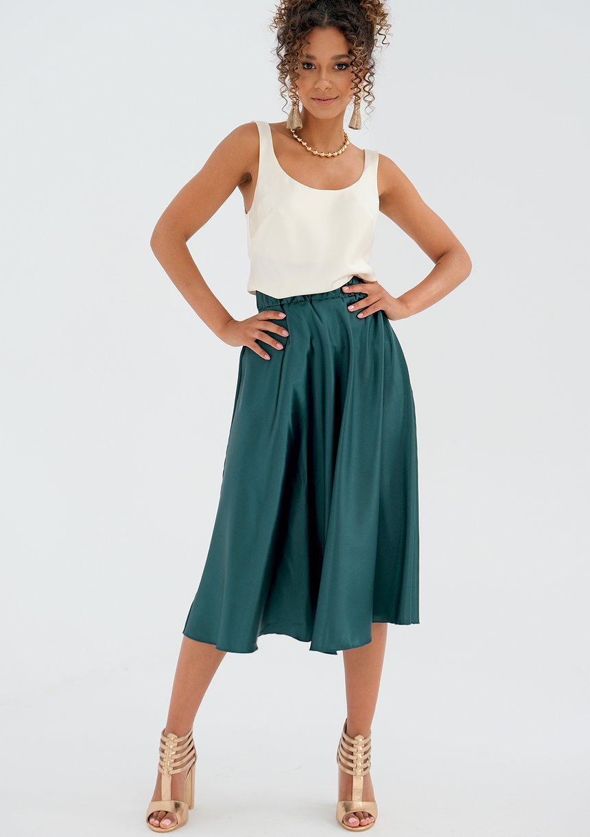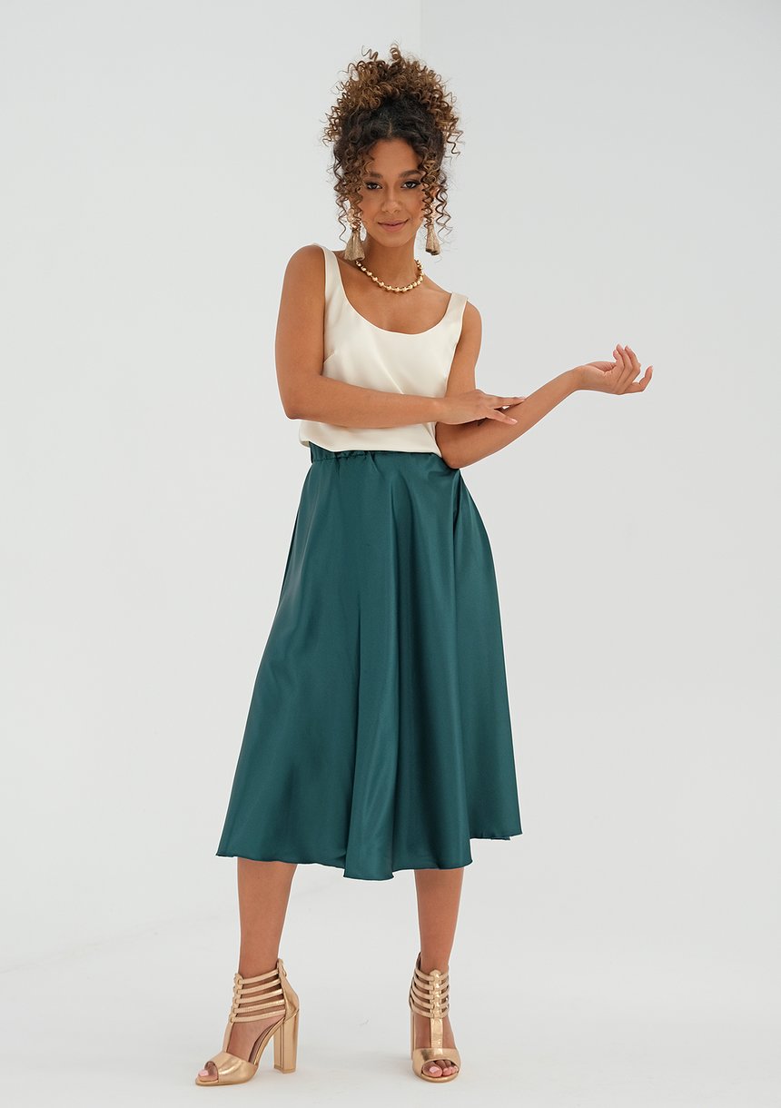 Araya - midi green satin skirt