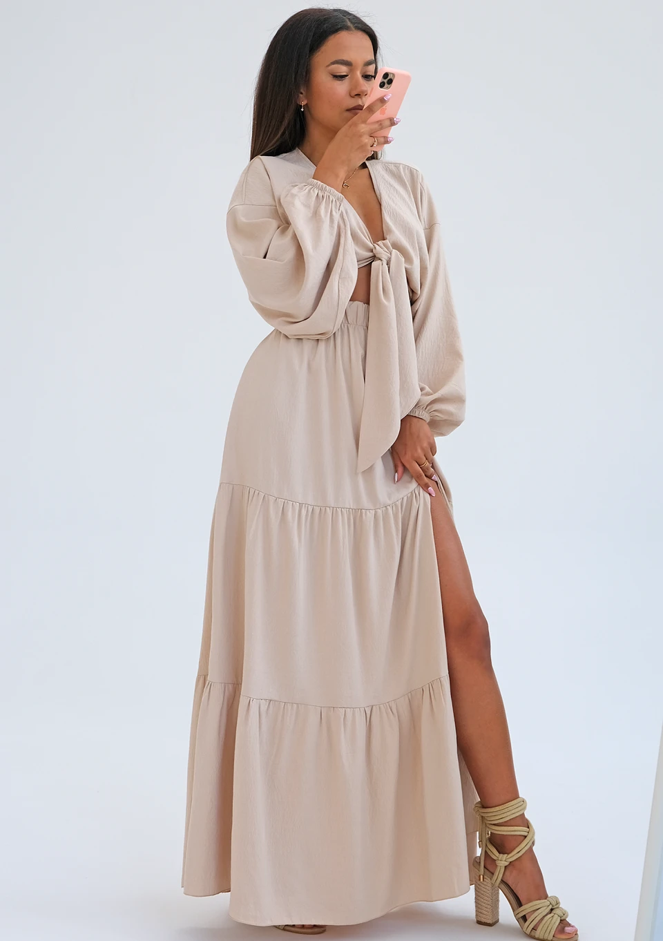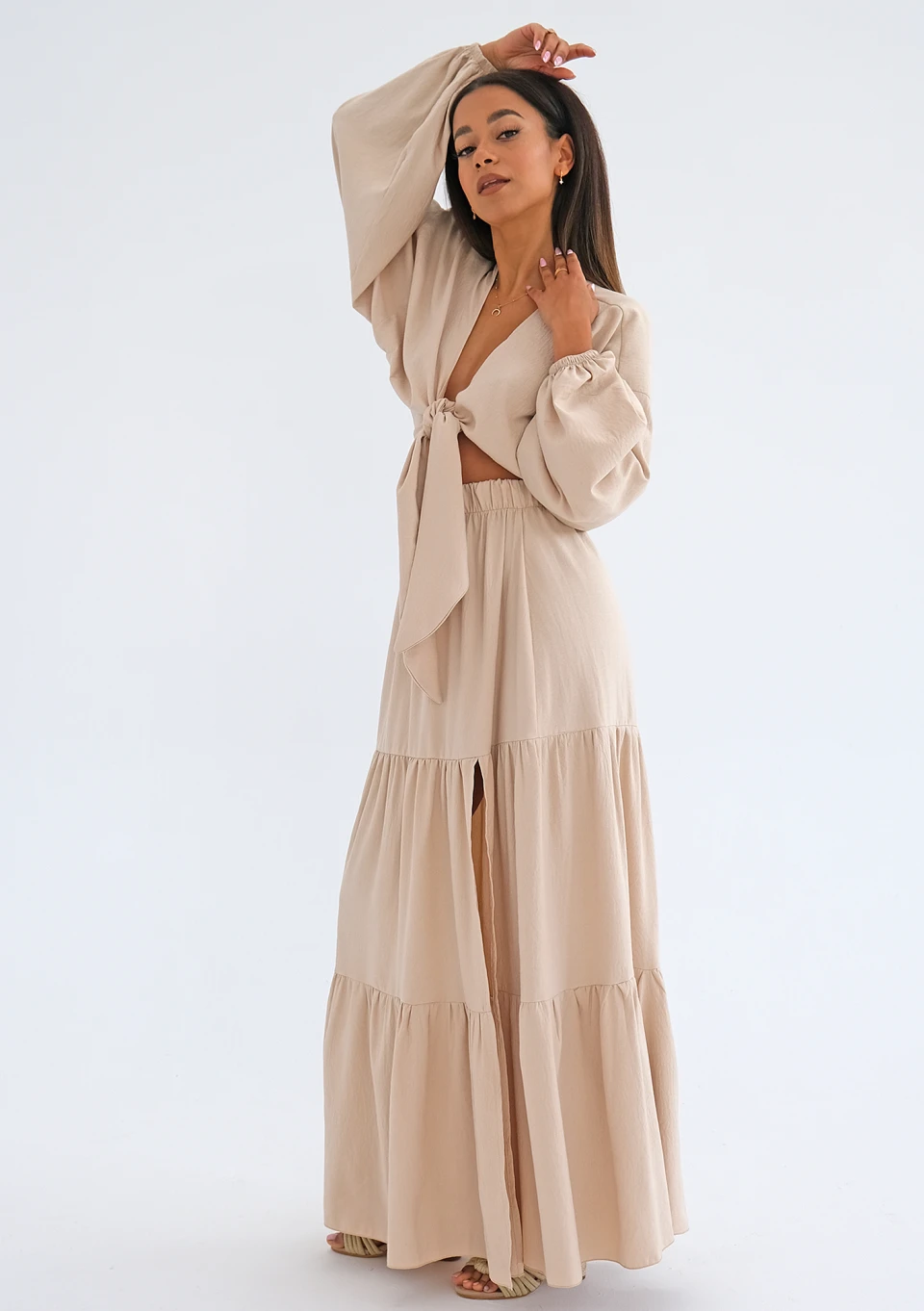Evita - Beige rayon midi dress