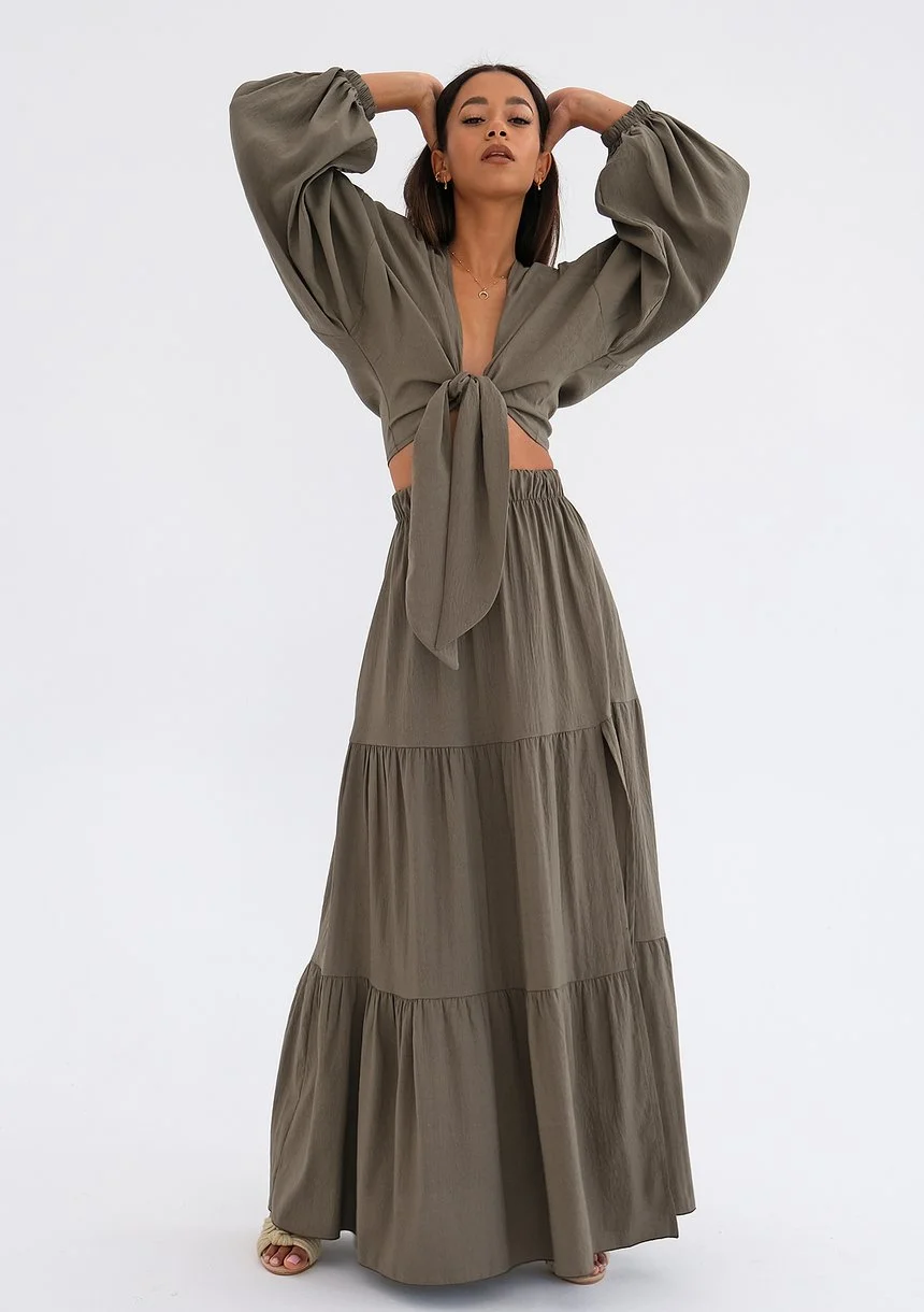 Rosy - Khaki boho maxi skirt
