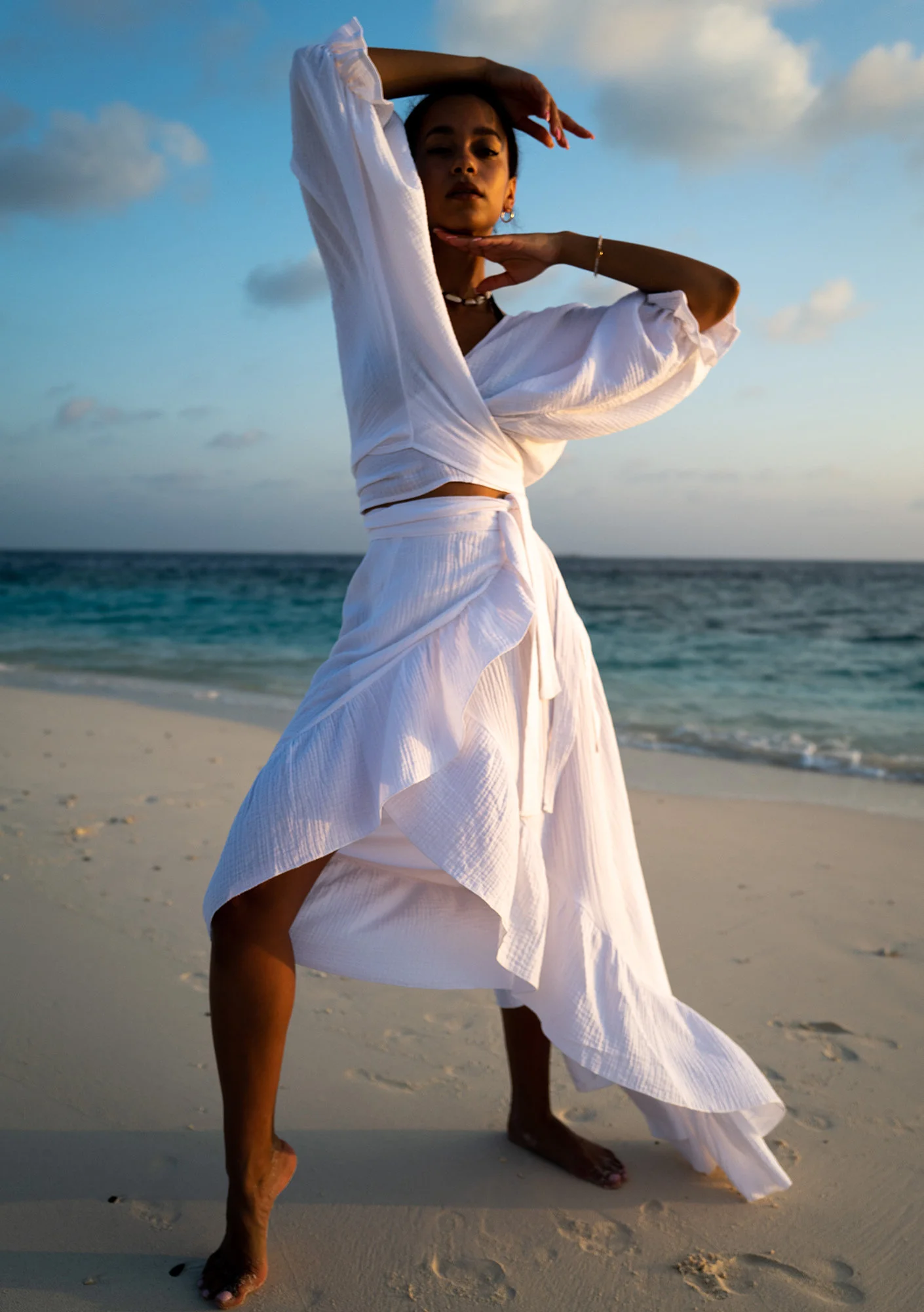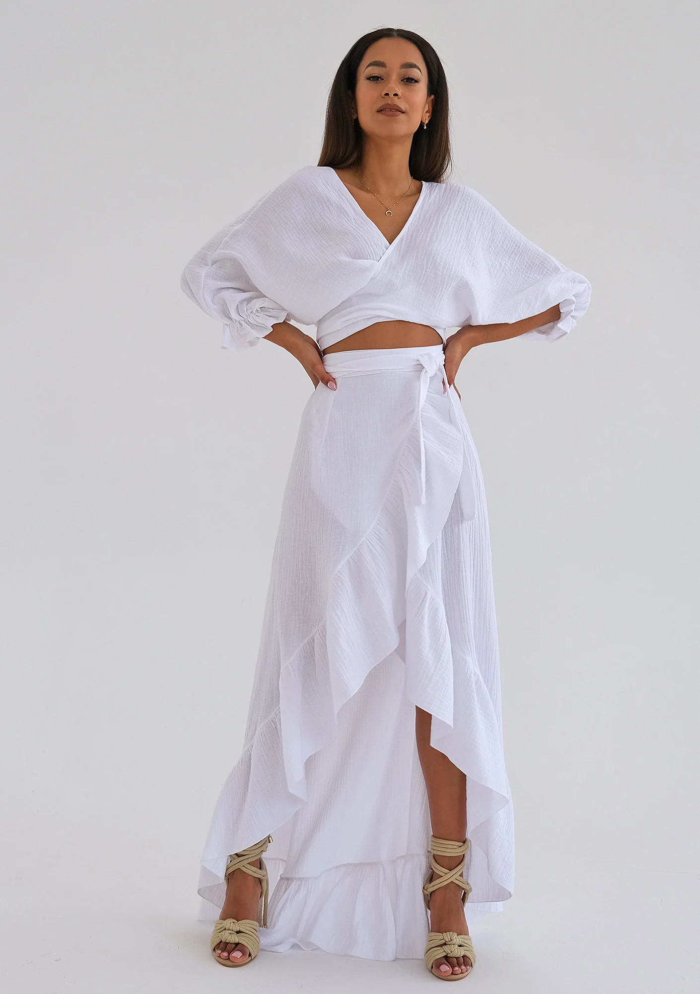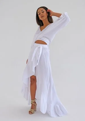 Nie byłam do niej przekonana na początku, ale po wyprasowaniu zaczęła się inaczej układać i w połączeniu z moim topem i piórami wygląda obłędnie. Lekka, zwiewna, kobieca. To fakt, że trochę prześwituje, ale cielista bielizna daje radę ;)