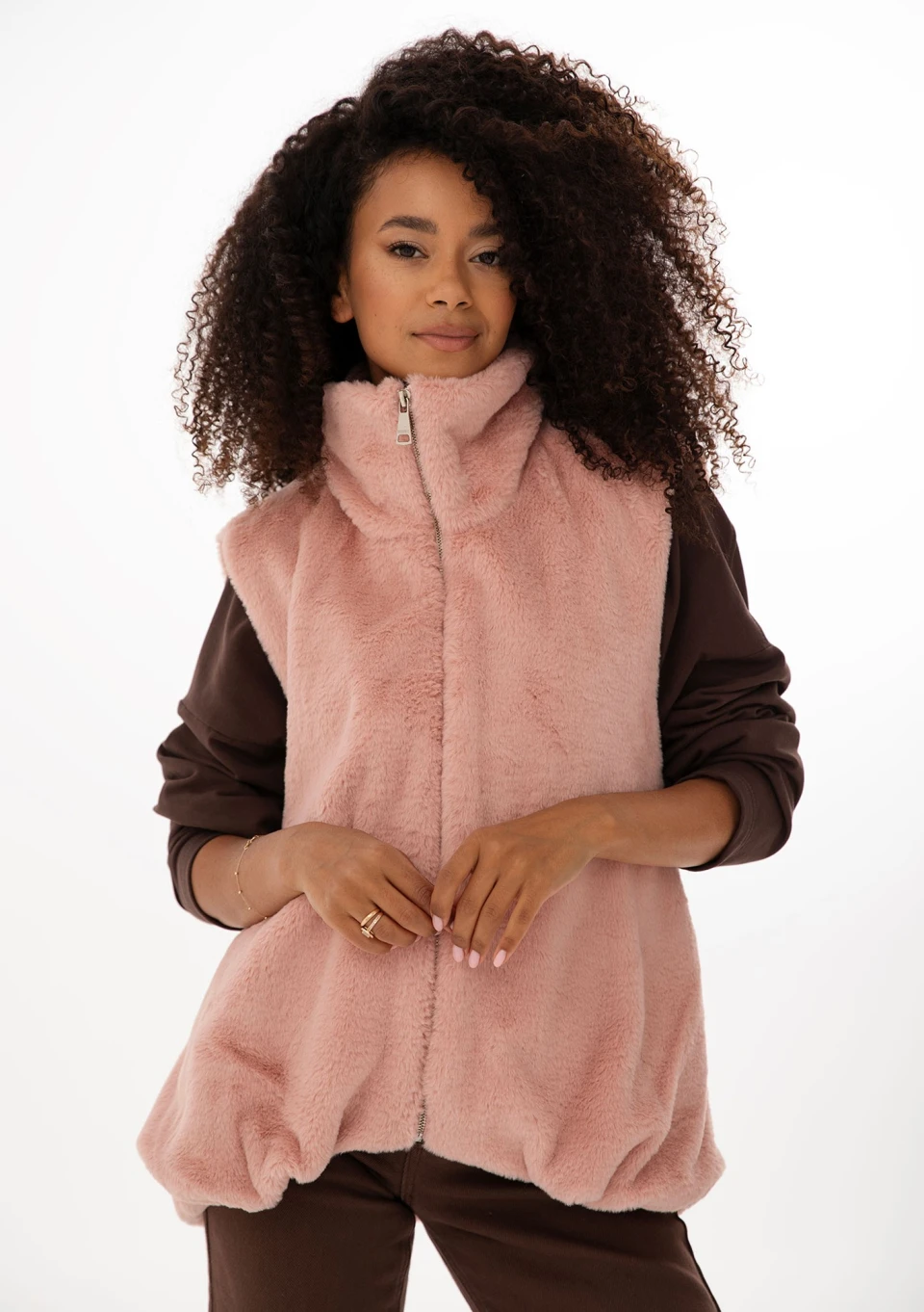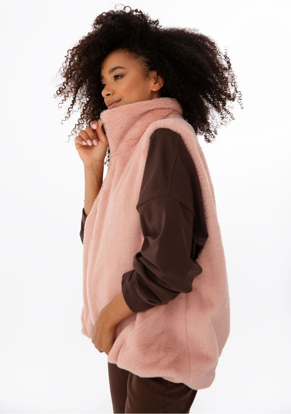 Muffi - Pink faux fur oversize sleeveless jacket