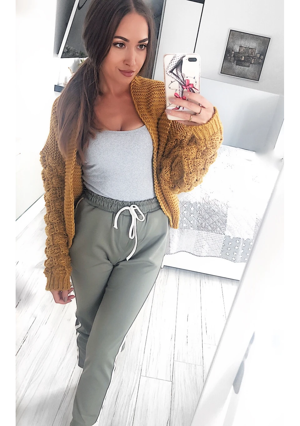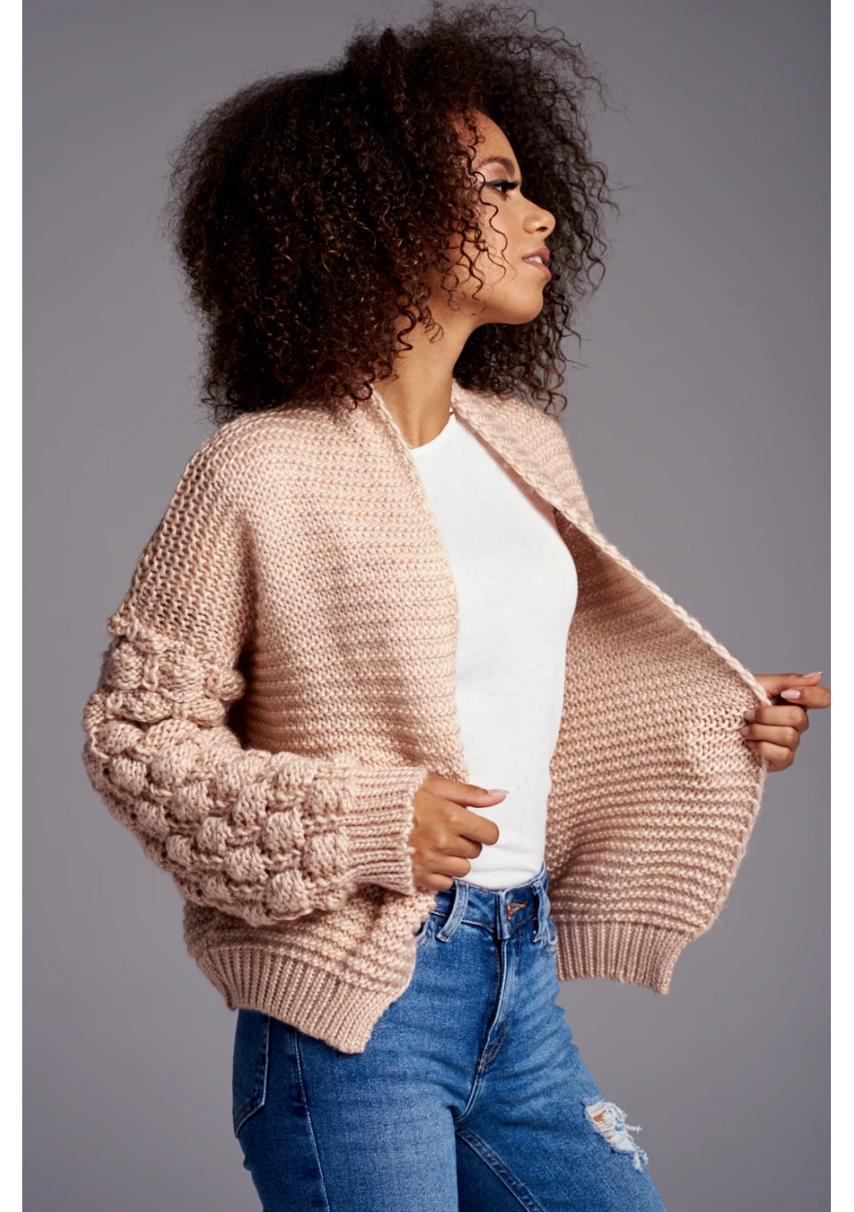 Celine - Short camel brown knitted cardigan