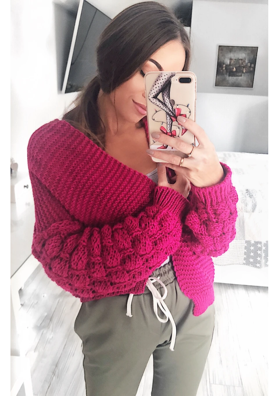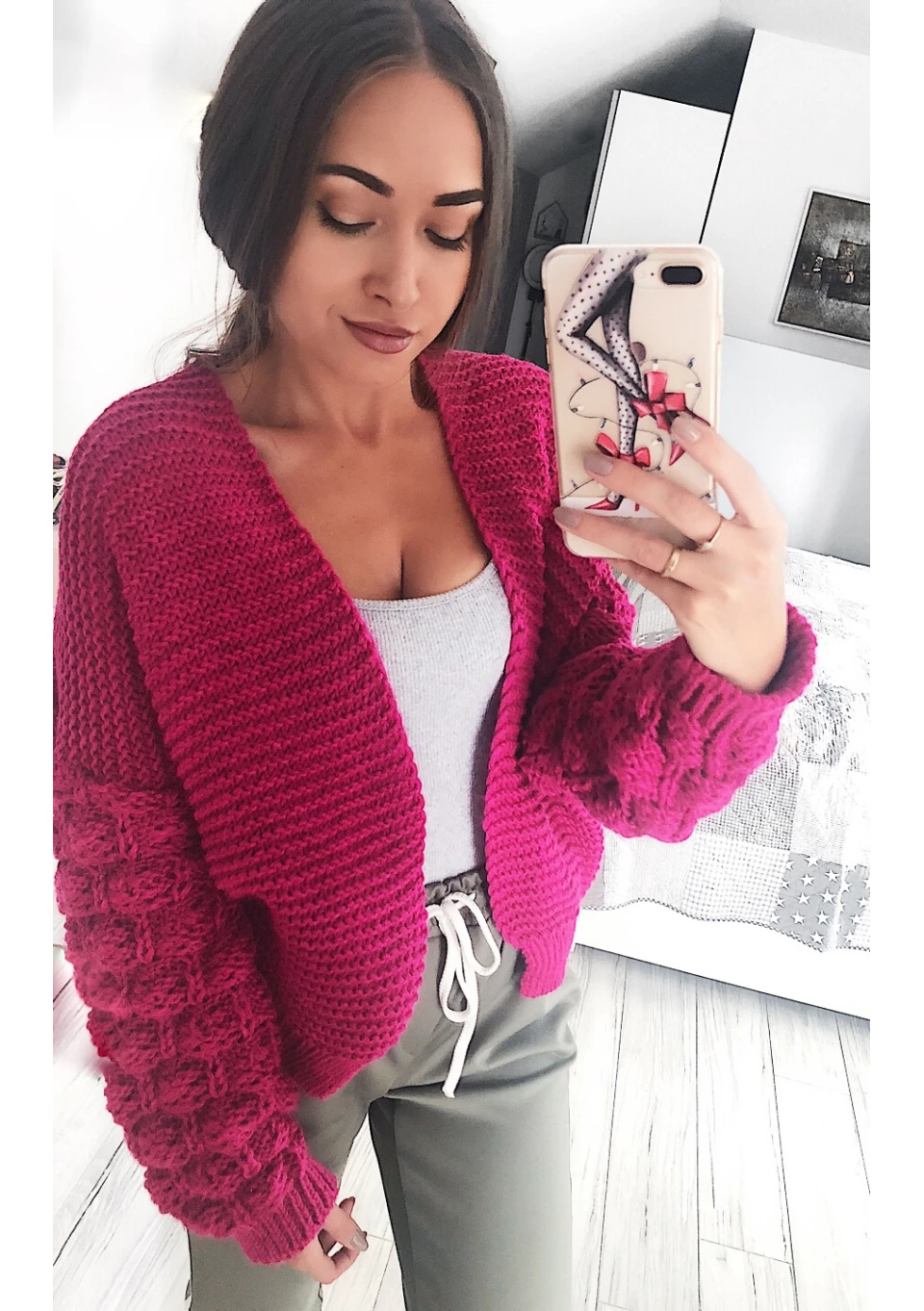 Celine - Short claret knitted cardigan