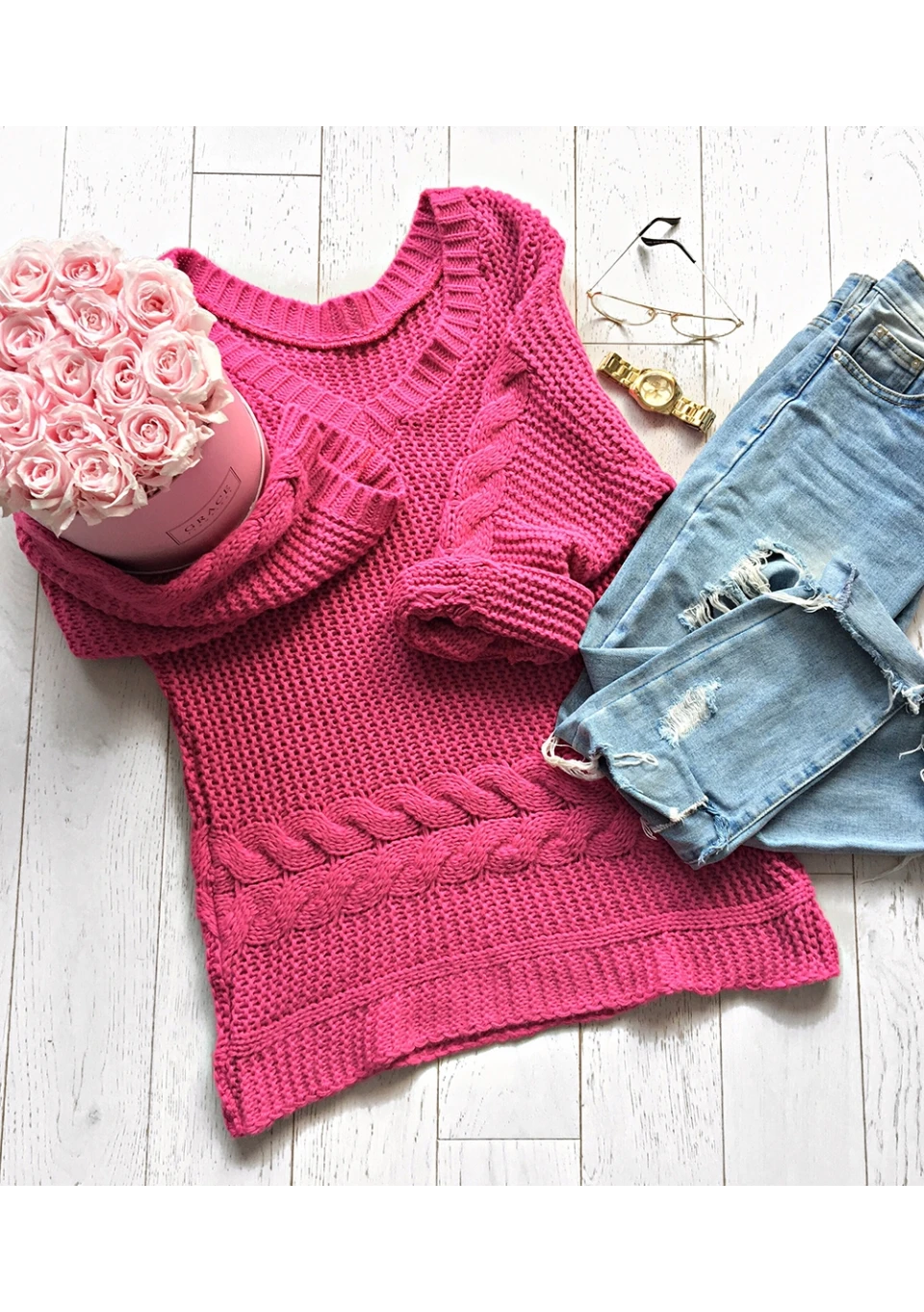 Misti - Pink waffle weaved sweater