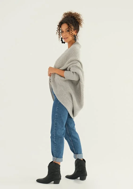 Jesse - Loose melange beige polo neck sweater
