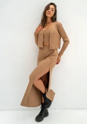 Sweterek jest fajny i wygodny. Dobrze się układa. Z topem tworzy super zestaw. Pasuje nie tylko do spódnicy. Tworzy fajną stylizację również z dżinsami.