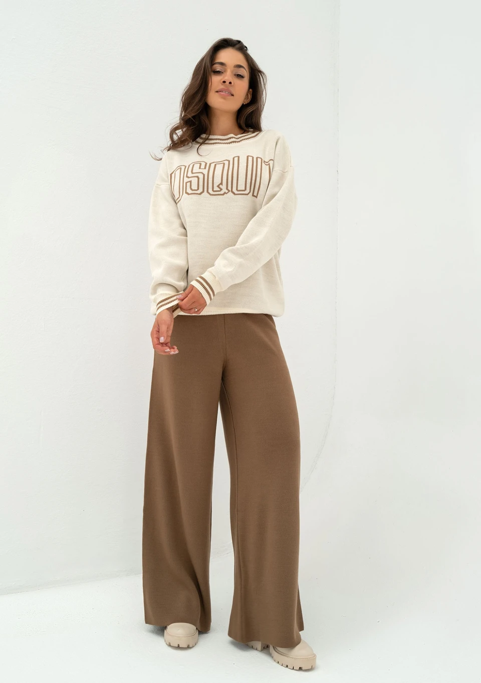 Moore - Camel and ecru sweater with a logo