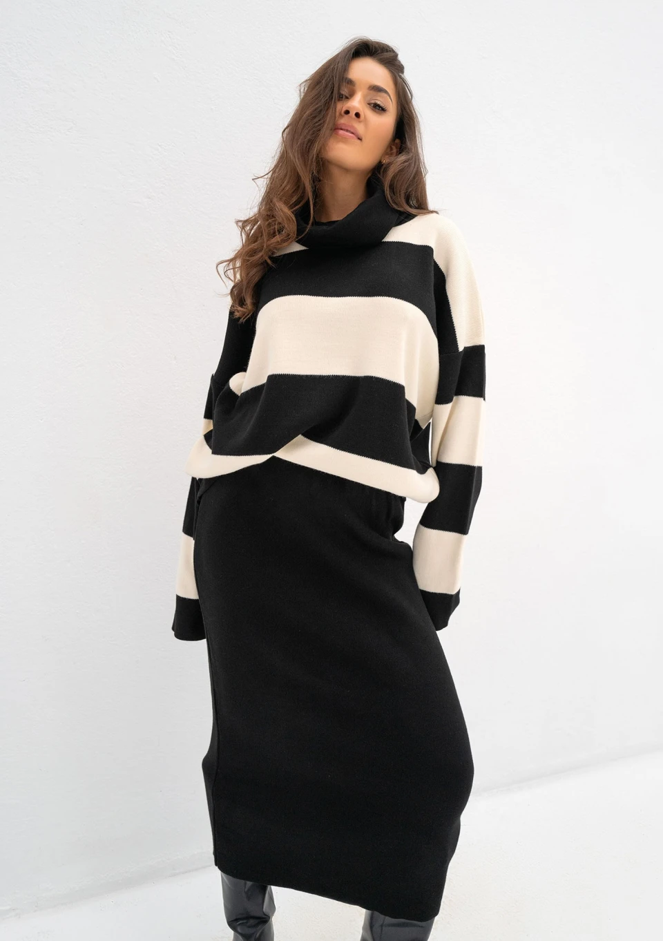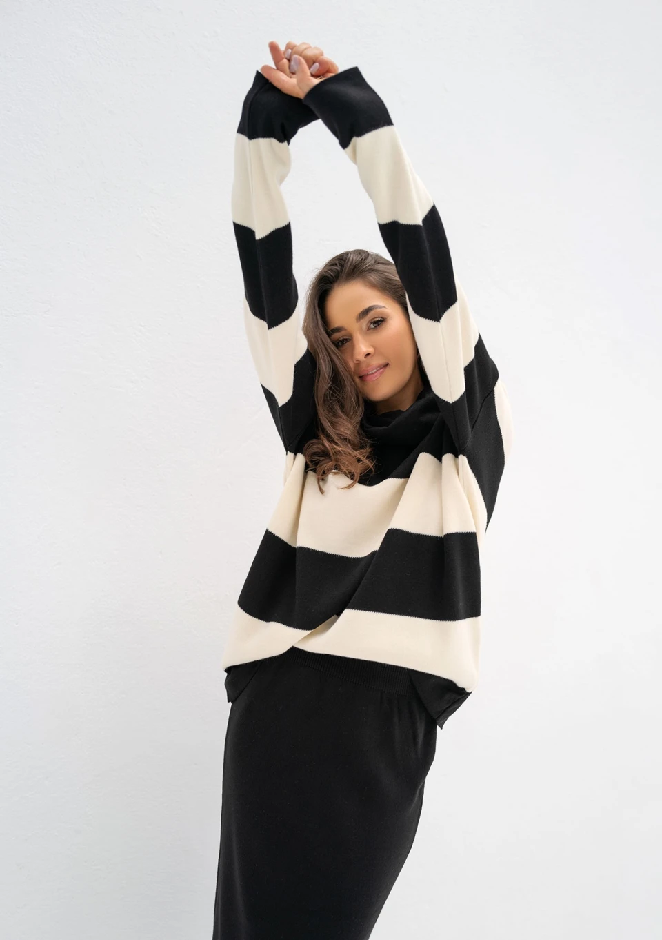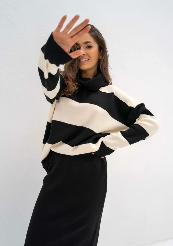 Mishy - Black and ecru striped polo neck sweater