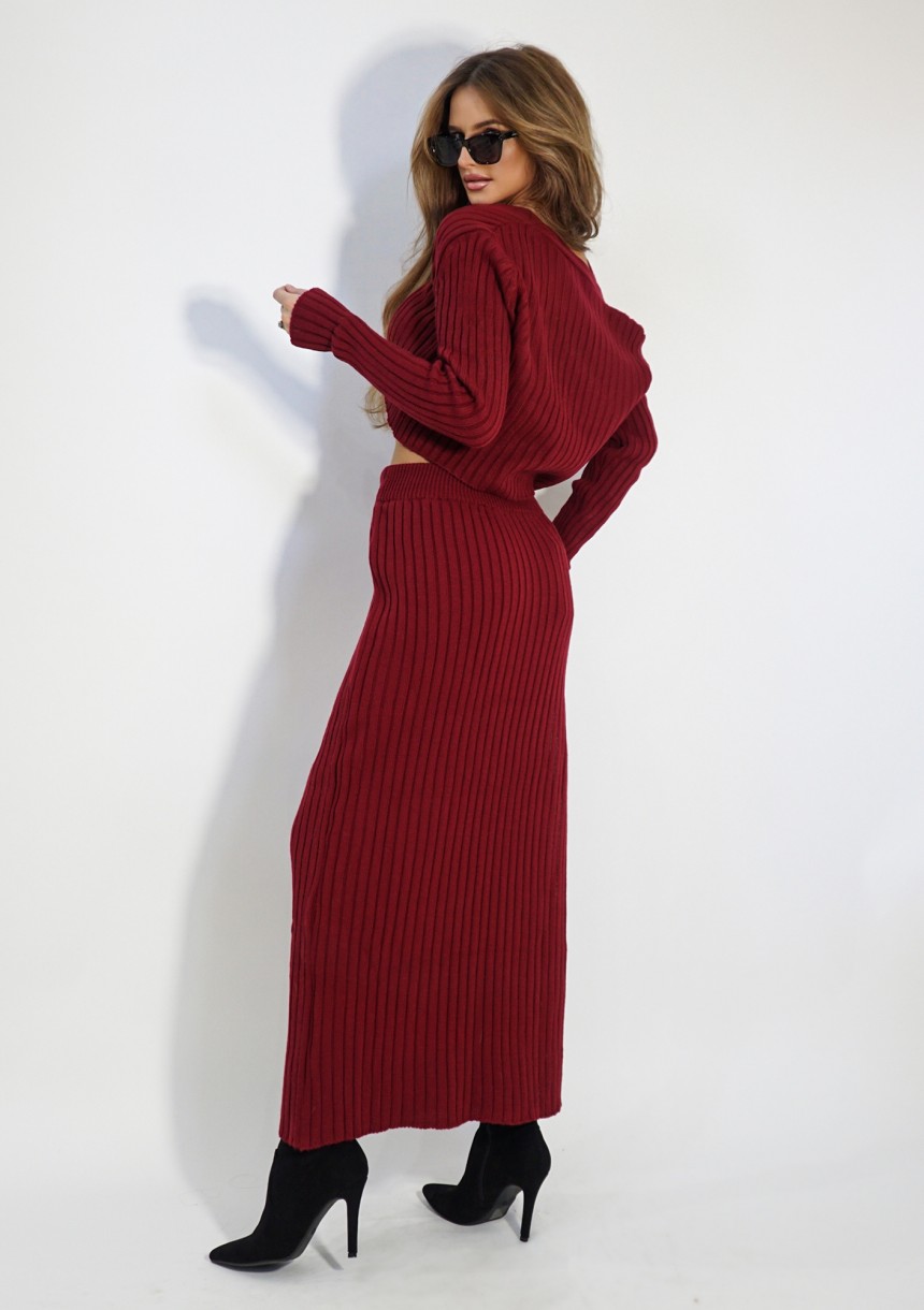 Celine - Short claret knitted cardigan