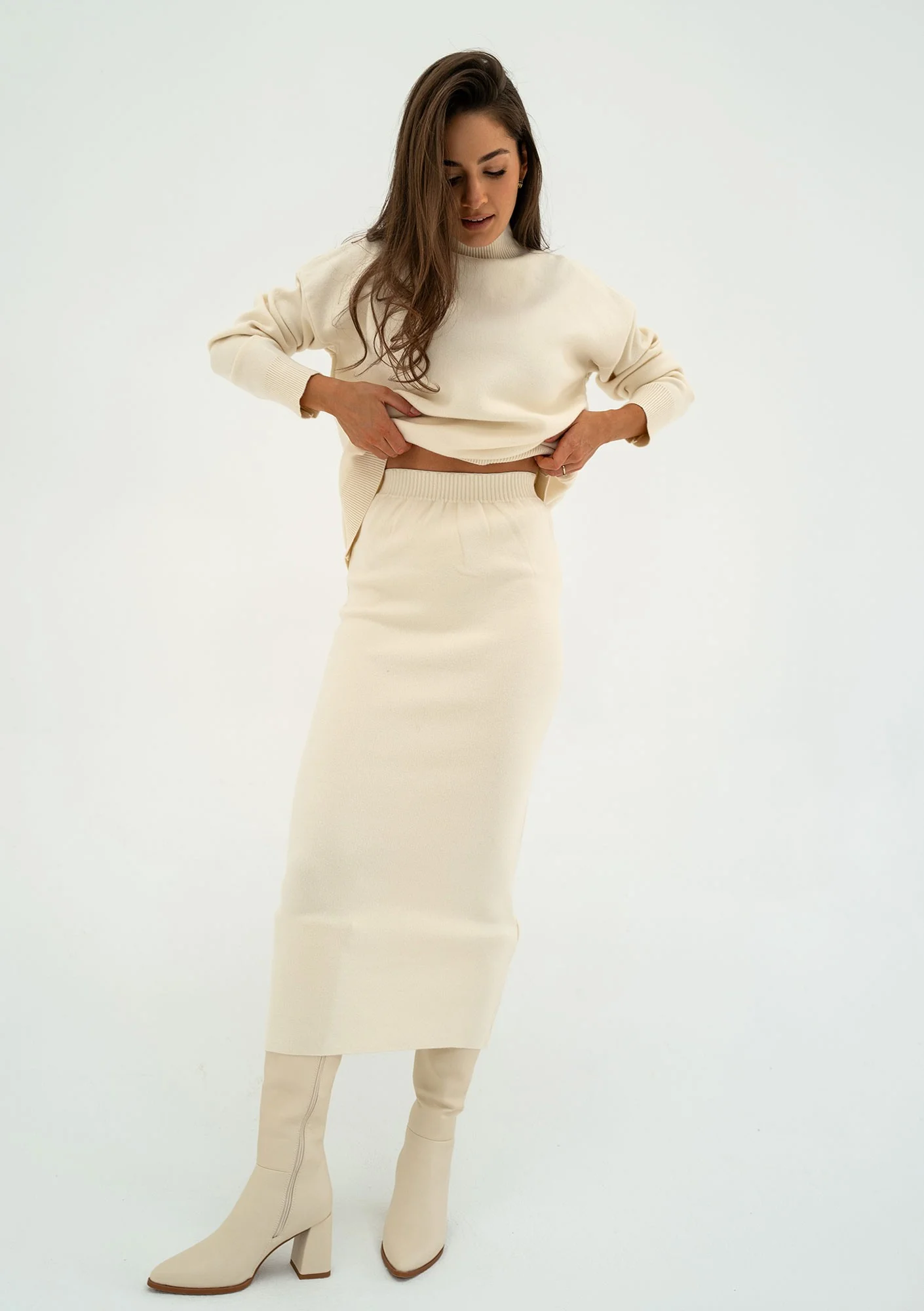 Malte - Ecru knitted polo neck sweater
